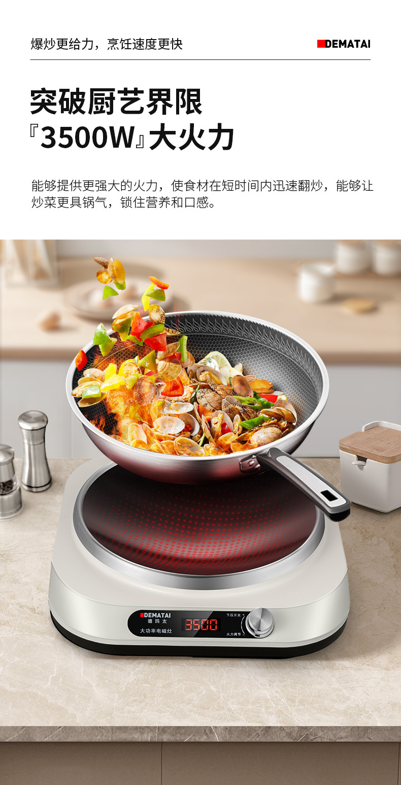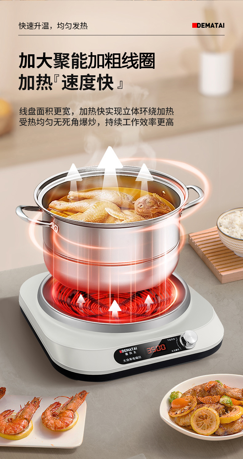 Dematai 3500W horno electromagnético cóncavo pequeño tipo de hogar de una persona nuevo tipo de estufa de fuego fuerte de alta potencia fábrica de horno de batería