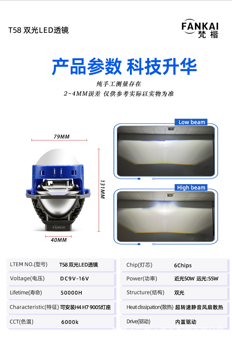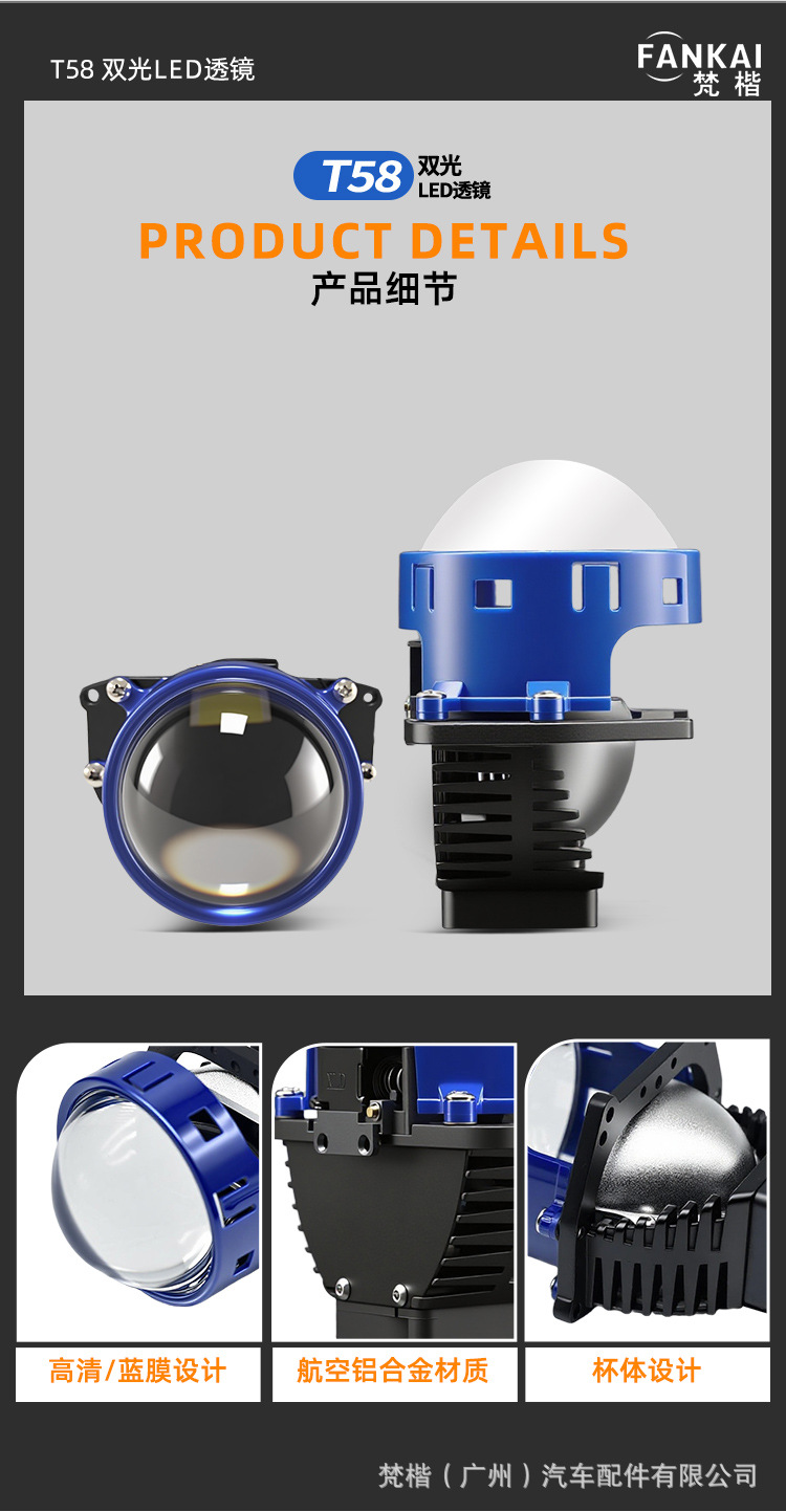 Transfronterizo de 3 pulgadas lente de doble luz delantera LED luz de dirección 55W H4 H7