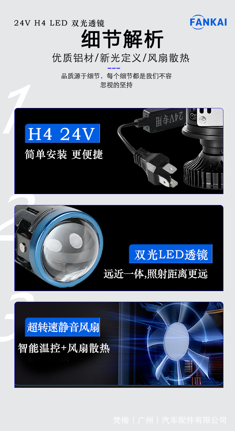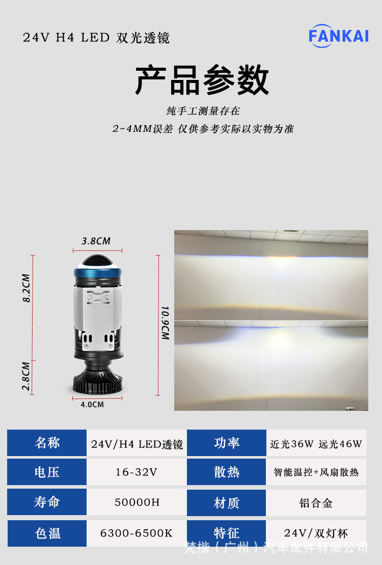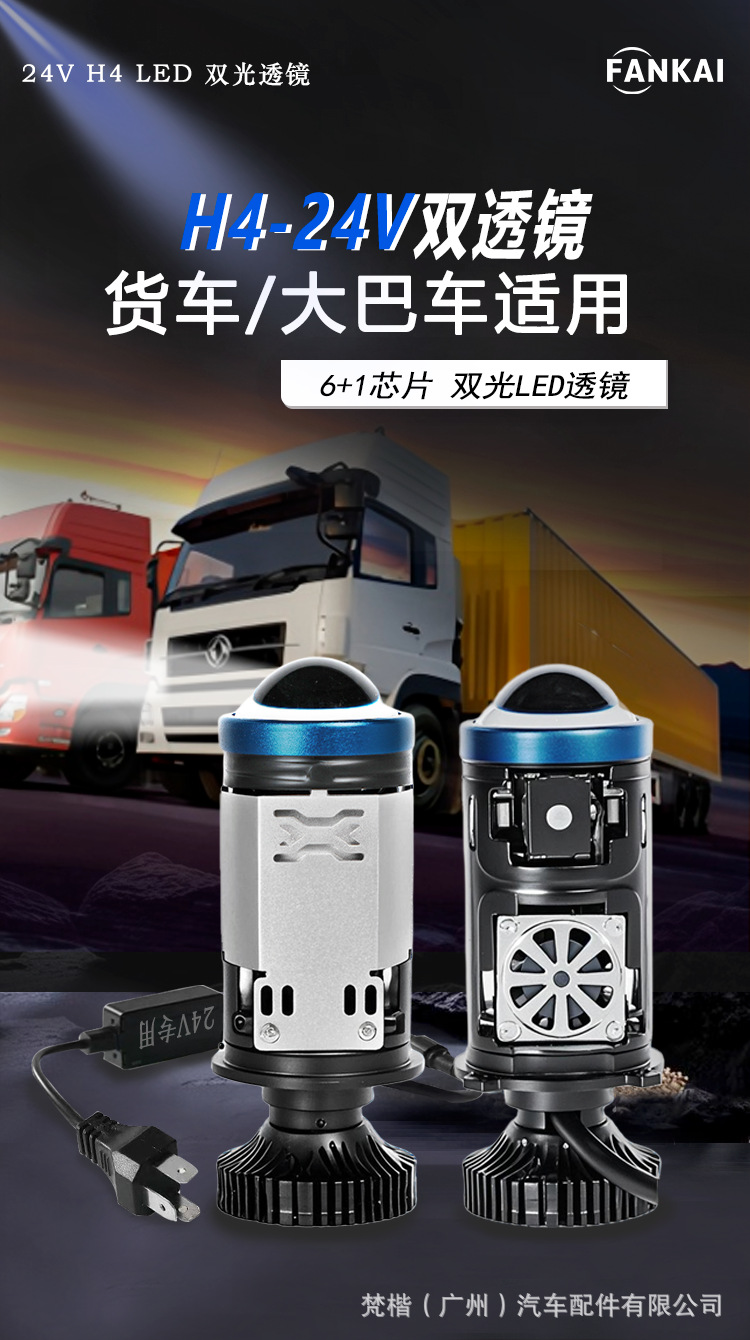 Nuevo H4 24V coche motocicleta LED doble lámpara copa faro integrado lejano y cercano lente pequeña de doble luz de alto brillo y concentración