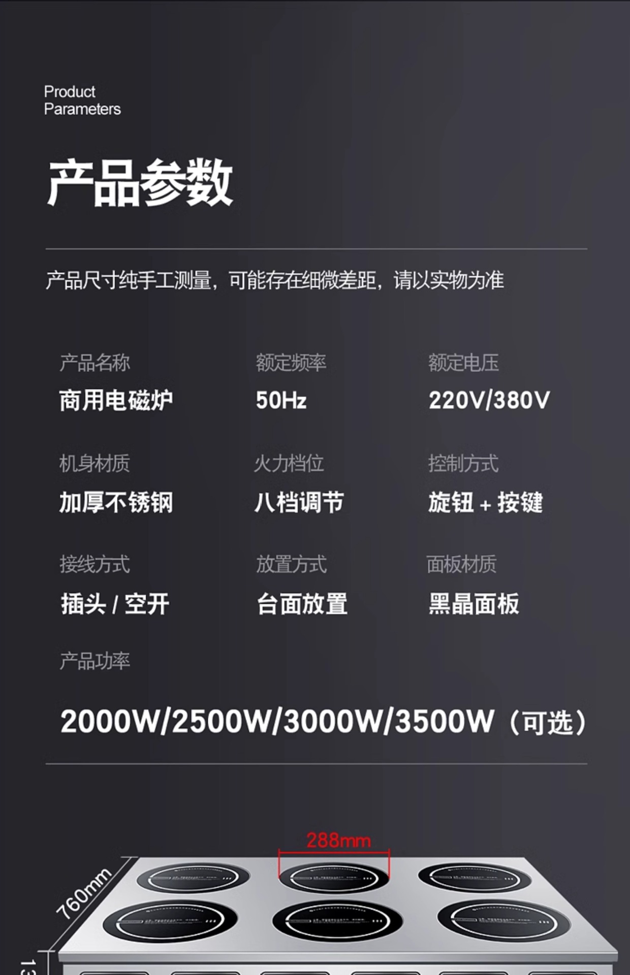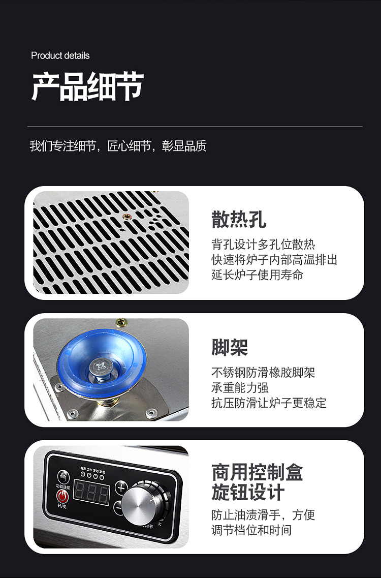 | Colores | Cocina de inducción vertical de dos extremos,Cocina de inducción horizontal de dos extremos,Cocina de inducción horizontal de tres cabezas,Cocina de inducción horizontal de cuatro cabezas,Cocina de inducción de cuatro cabezas y dos filas,Cocina de inducción de doble fila de seis cabezas,Cocina de inducción de doble fila de ocho cabezas,Estante de cocina de inducción de cuatro cabezas y dos filas,Estante de cocina de inducción de doble fila de seis cabezas,Estante de cocina de inducción de doble fila de ocho cabezas,Tipo de gabinete de cocina de inducción de cuatro cabezas y dos filas,Tipo de gabinete de cocina de inducción de doble fila de seis cabezas,Tipo de gabinete de cocina de inducción de doble fila de ocho cabezas,Estufa de cerámica eléctrica vertical de dos extremos,Estufa de cerámica eléctrica horizontal en dos extremos,Estufa de cerámica eléctrica horizontal de tres cabezas,Estufa de cerámica eléctrica horizontal de cuatro cabezas,Estufa de cerámica eléctrica de cuatro cabezas y dos filas,Estufa de cerámica eléctrica de doble fila de seis cabezas,Estufa de cerámica eléctrica de doble fila de ocho cabezas,Estante de estufa de cerámica eléctrica de cuatro cabezas y dos filas,Estante de estufa de cerámica eléctrica de doble fila de seis cabezas,Estante de estufa de cerámica eléctrica de doble fila de ocho cabezas,Estufa de cerámica eléctrica de cuatro cabezas y doble fila tipo gabinete,Estufa de cerámica eléctrica de doble fila de seis cabezas tipo gabinete,Estufa de cerámica eléctrica de doble fila de ocho cabezas tipo gabinete |