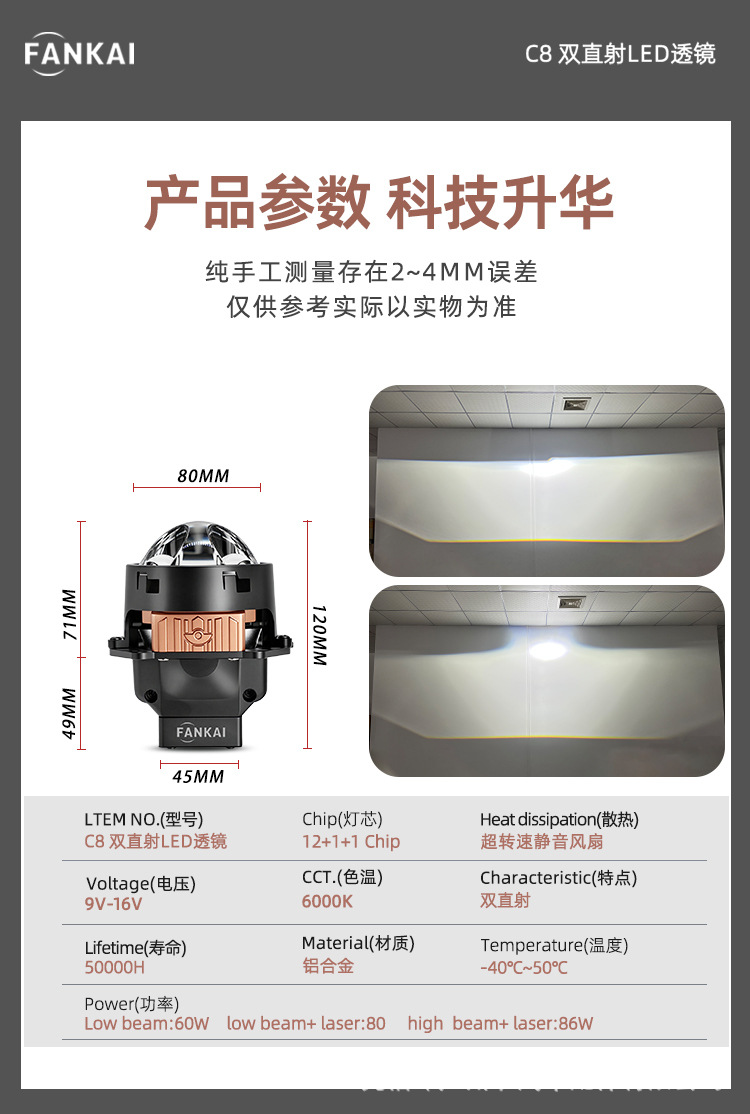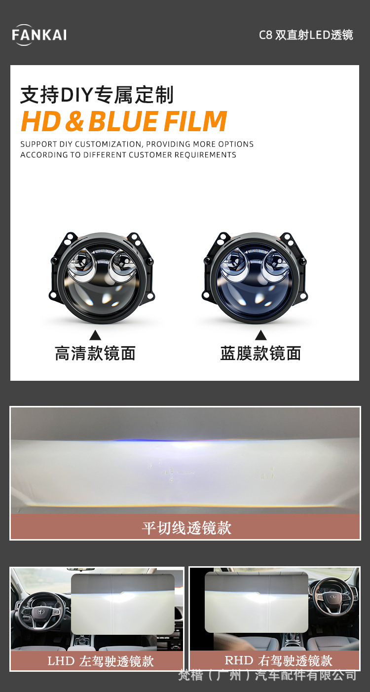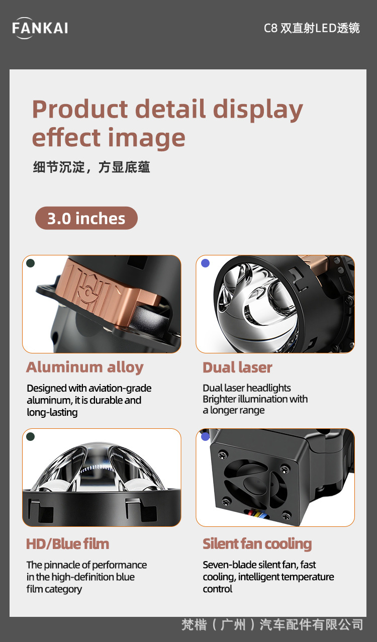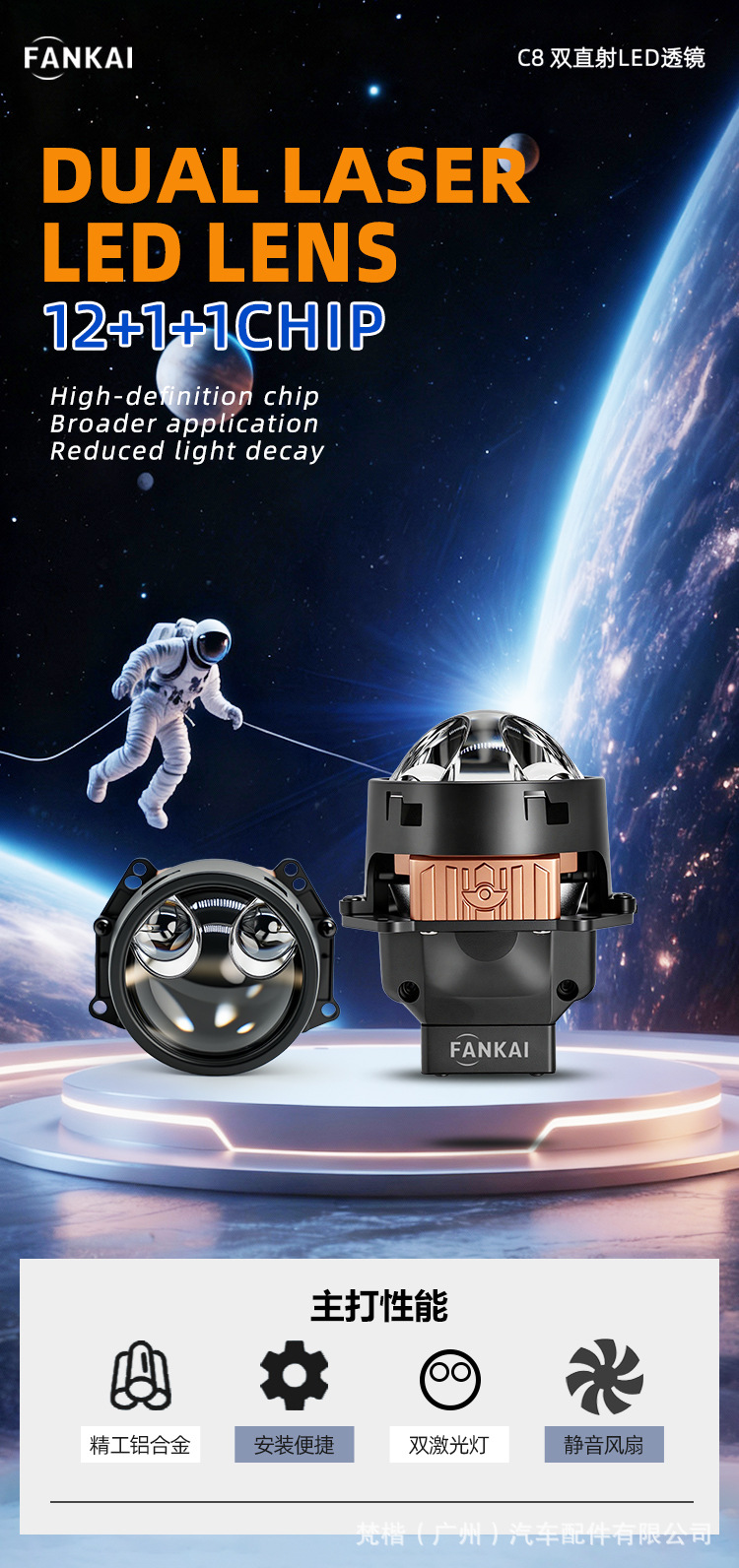 Transfronterizo de 3 pulgadas C8 doble láser directo led lente de luz dual 86W alta potencia transformación de farol de automóvil
