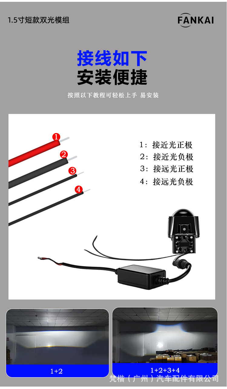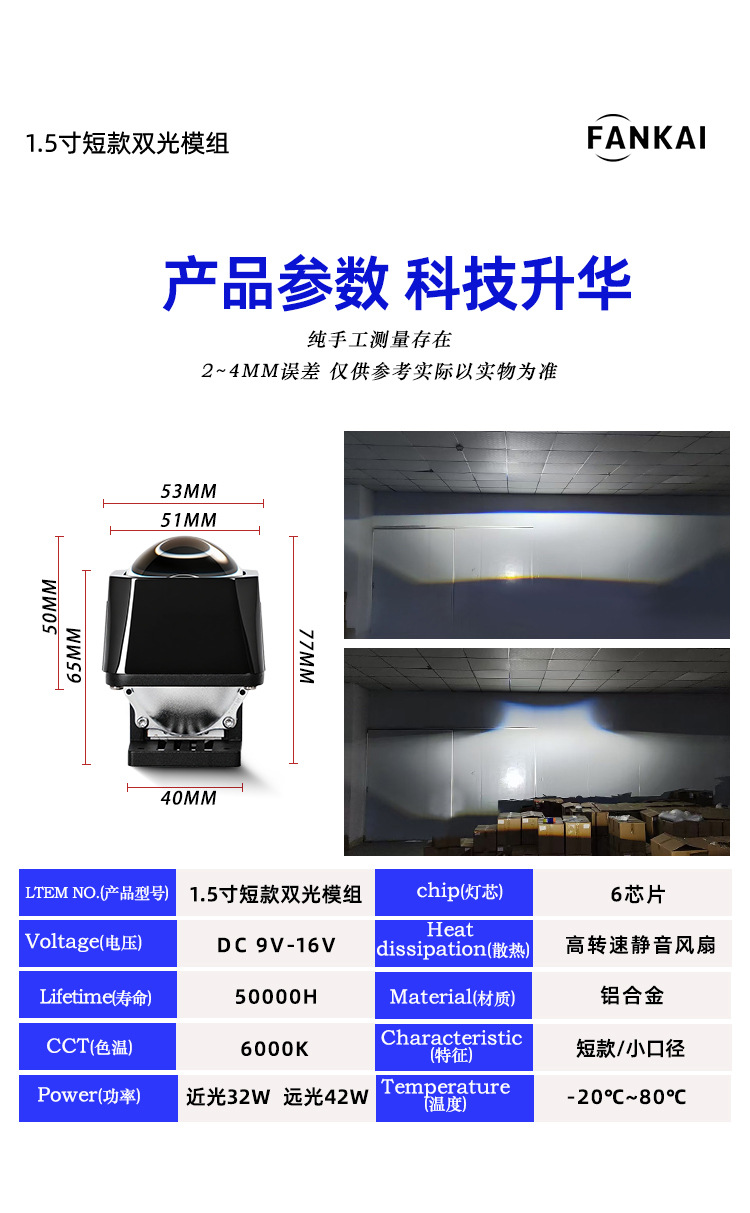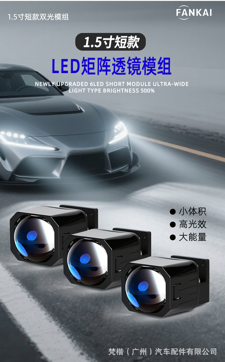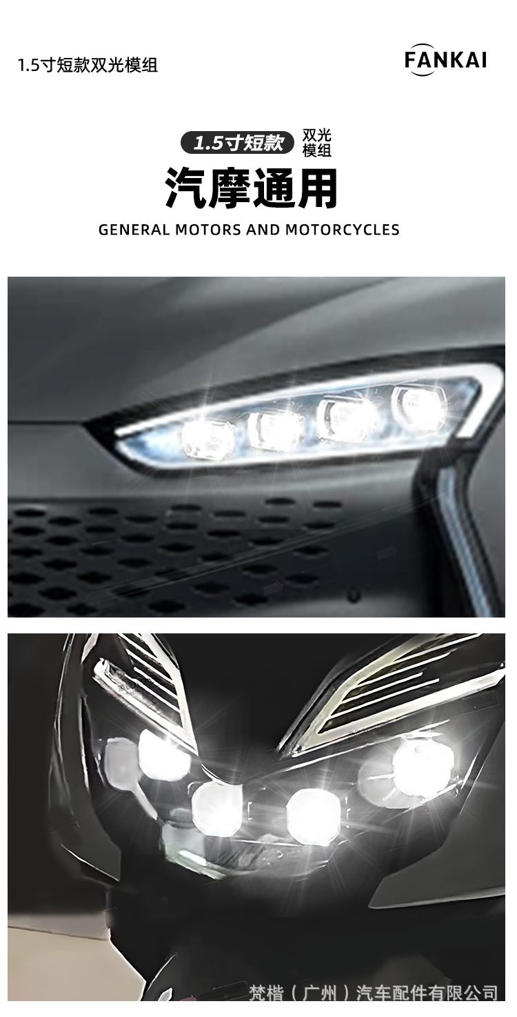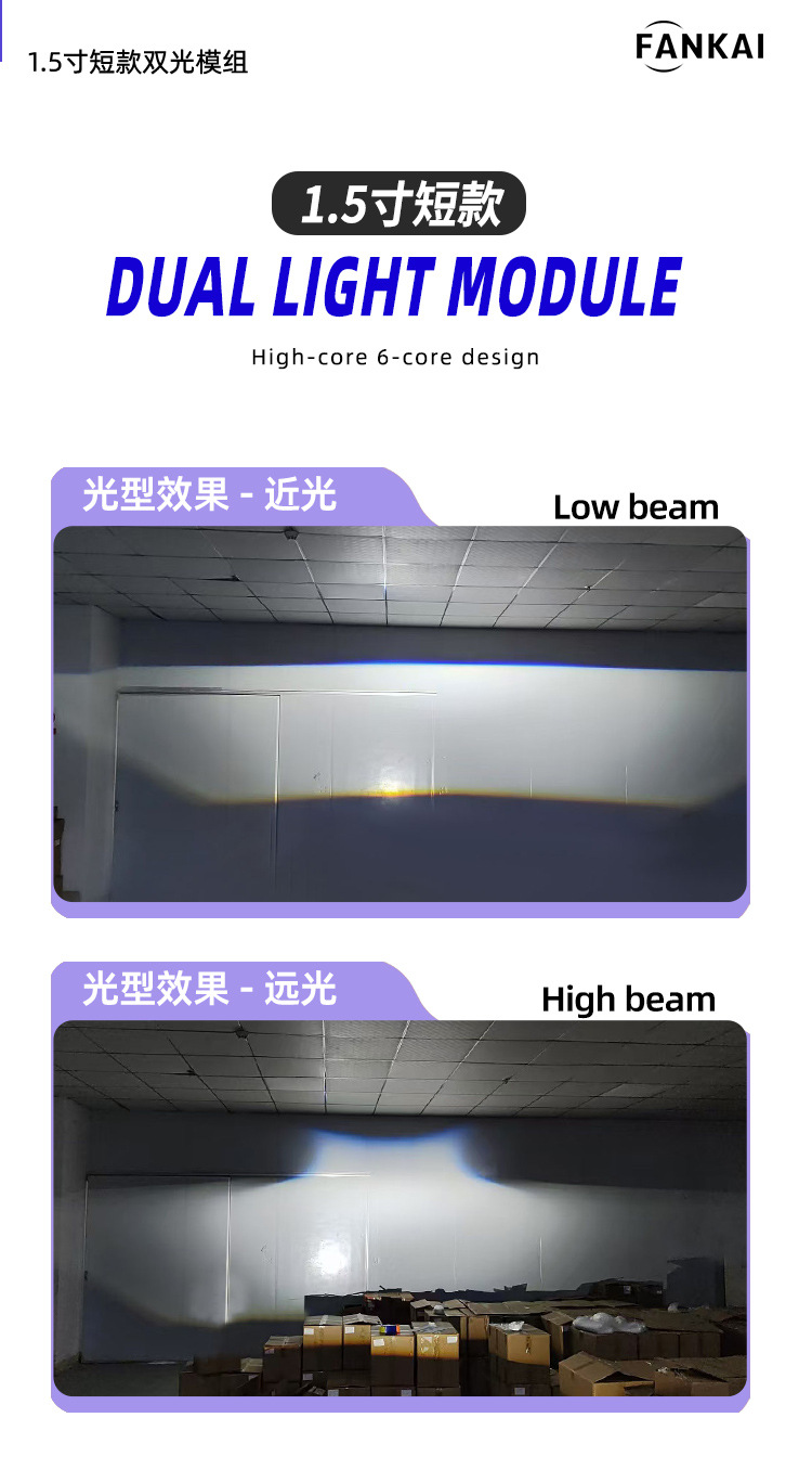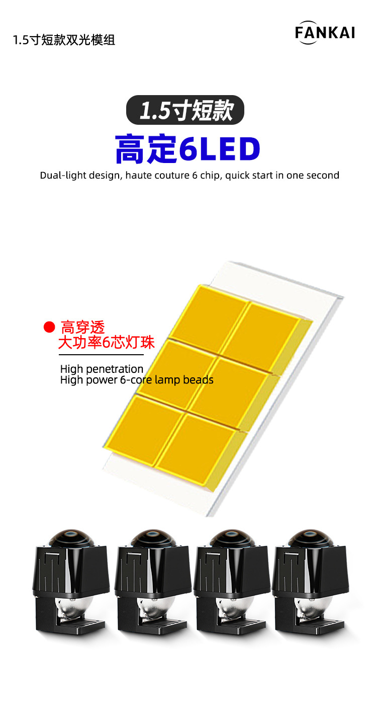 Auto delantero de motocicleta 1.5 pulgadas corto LED doble luz módulo de matriz de distancia y cerca súper brillante universal
