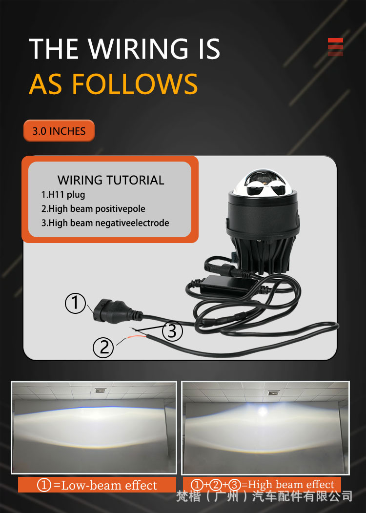 Transfronterizos 3.0 pulgadas automóviles LED delanteros de niebla directa lente de doble luz de alta potencia 75W láser impermeable luz alta y corta