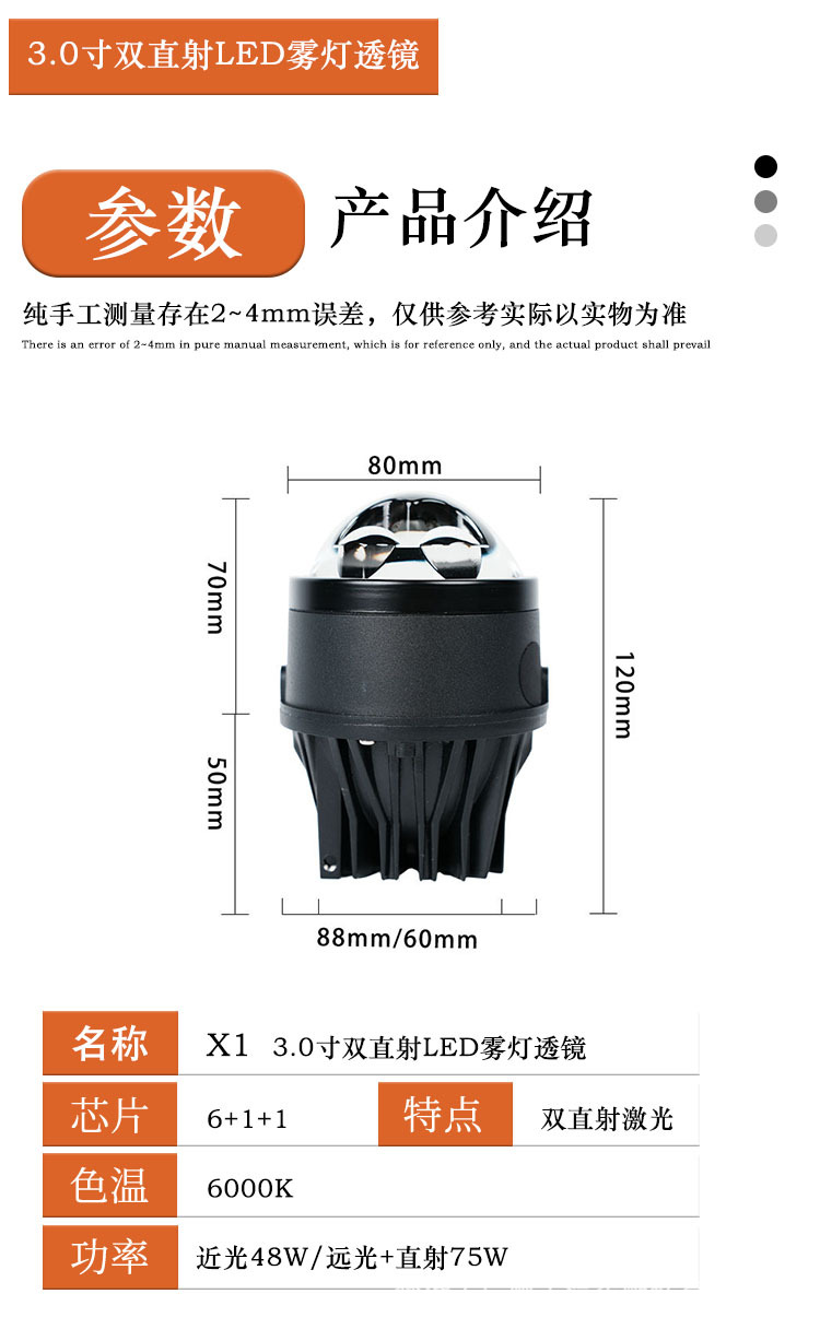 | Modelo | Lente de doble Luz LED de Doble luz directa de X1 3 pulgadas |