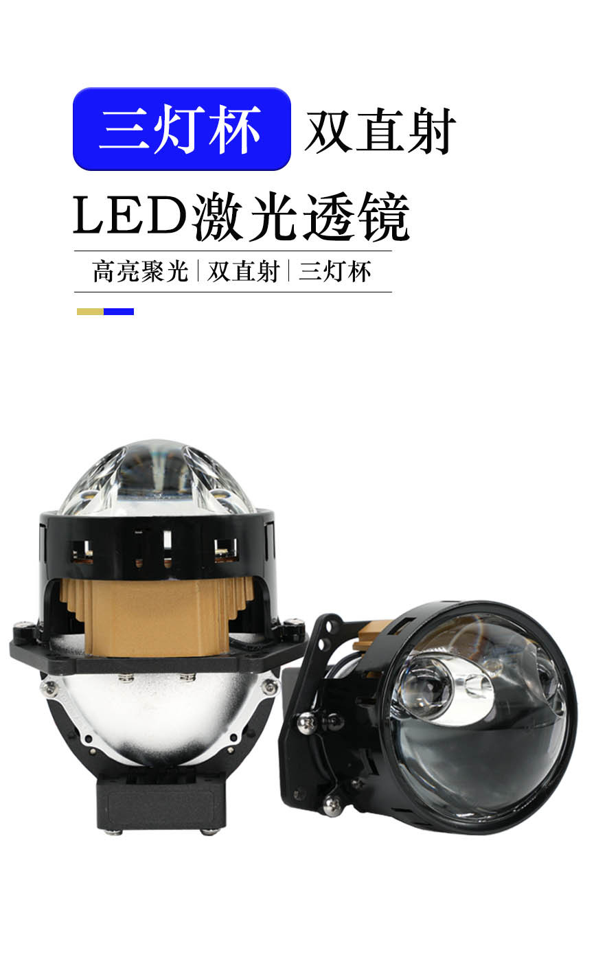 Faros del automóvil T2 tres tazas de luz doble LED directo doble lente láser transformar y actualizar los faros 80W
