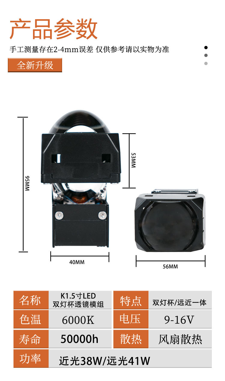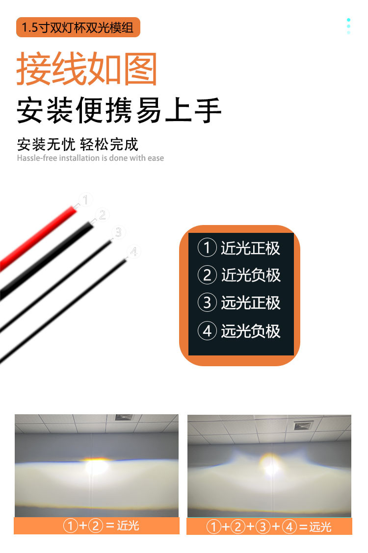Venta directa de fábrica de 1,5 pulgadas doble lámpara Copa LED matriz doble Módulo de luz de alta potencia modificado coche faro lejos y cerca integrado