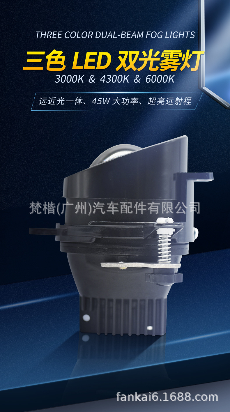 Luces antiniebla LED de tres colores para automóviles, modificación de lente de luz dual de 3 pulgadas, luz blanca, luz amarilla, amarillo claro, adecuadas para Ford, General Motors, Nissan.