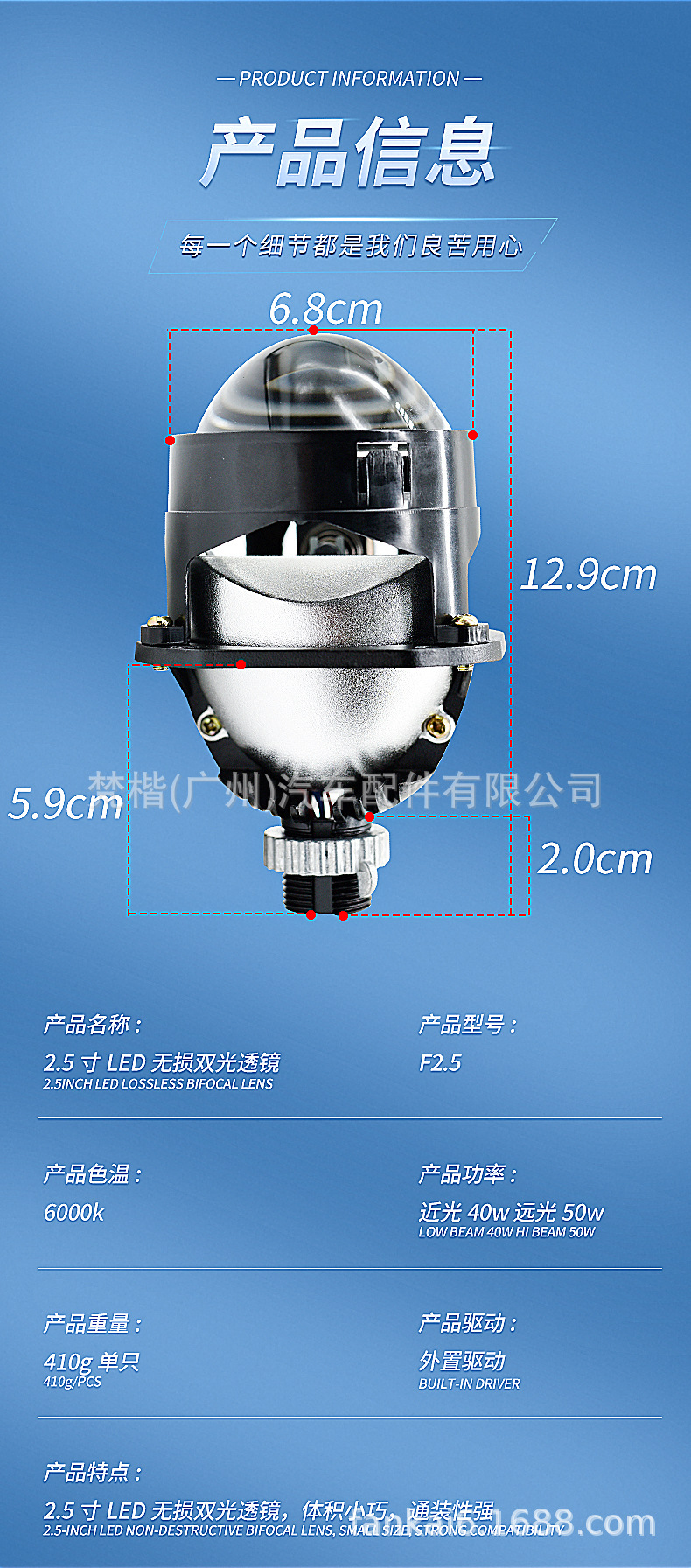 Mini lente bifocal LED no destructiva de 2,5 pulgadas, faros de coche modificados, motocicleta, luz lejana y cercana súper brillante integrada h4h7