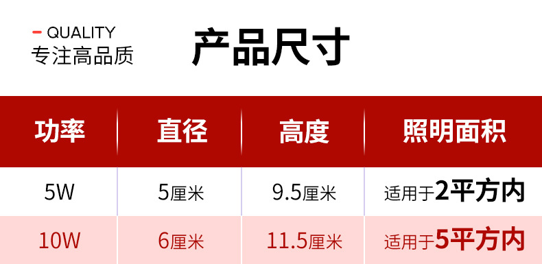 | Potencia | 5w - 5 cm de diámetro, 10w - 6 cm de diámetro |