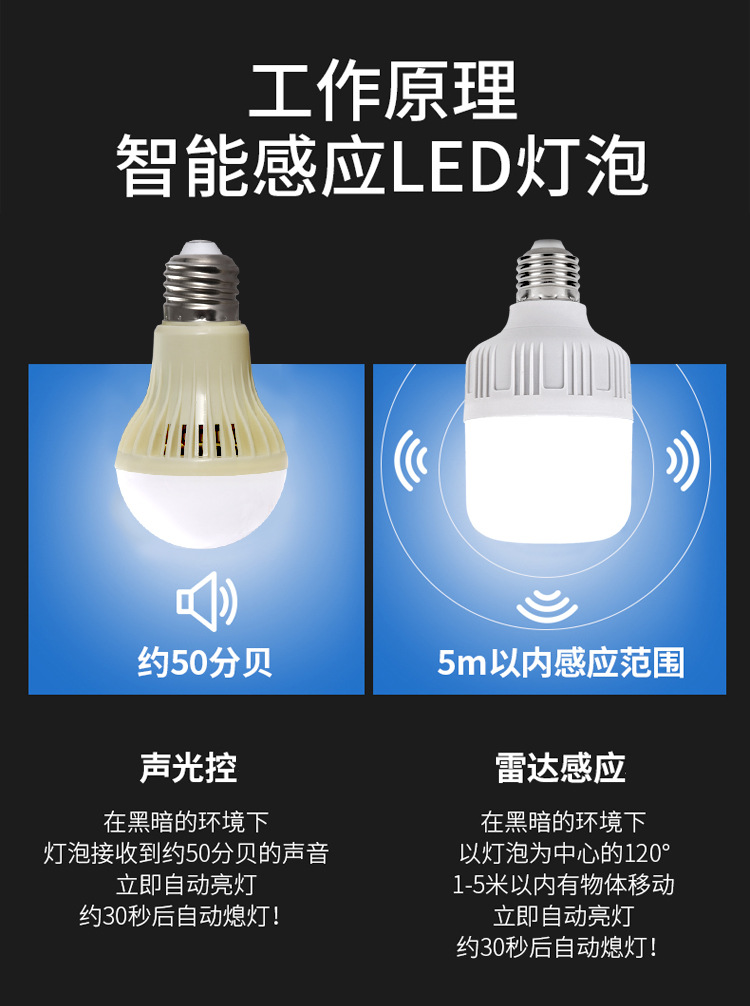 LED inteligente radar inducción lámpara escalera corredor de negocios inducción infrarroja e27 tornillo ahorro de energía bombilla de iluminación