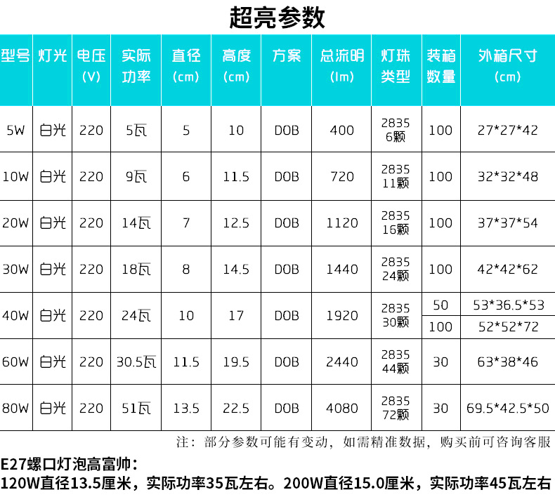 | Potencia | Luz de diamante de aluminio envuelta en plástico súper brillante de boca de tornillo e27 [sin embalaje], luz de diamante de aluminio envuelta en plástico súper brillante de boca de tornillo e27 [con caja de color], luz de diamante de aluminio envuelta en plástico súper brillante de boca de tarjeta B22 [sin embalaje], luz de diamante de aluminio envuelta en plástico súper brillante de boca de tarjeta B22 [con caja de color] |