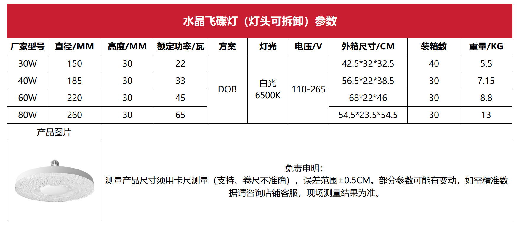 | Potencia | Lámpara de división de cristal de gama alta LED - 30W luz blanca, Lámpara de división de cristal de gama alta LED - 40W luz blanca, Lámpara de división de cristal de gama alta LED - 60W luz blanca, Lámpara de división de cristal de gama alta LED - 80W luz blanca, Lámpara de división de cristal de gama alta LED - 30W luz tricromática, Lámpara de división de cristal de gama alta LED - 40W luz tricromática, Lámpara de división de cristal de gama alta LED - 60W luz tricromática, Lámpara de división de cristal de gama alta LED - 80W luz tricromática |