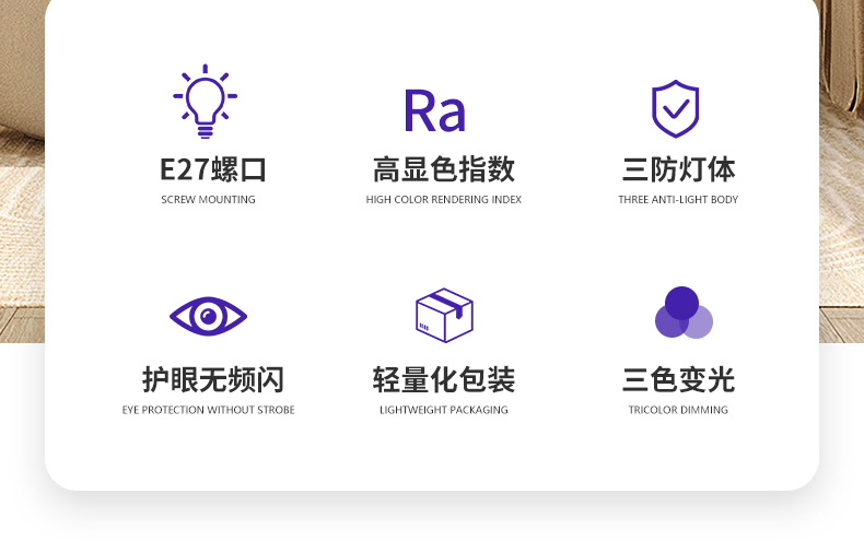 lámpara de tira larga led e27 tornillo hogar lámpara de ahorro de energía lámpara de cristal tricolor de alta potencia especial protector de ojos