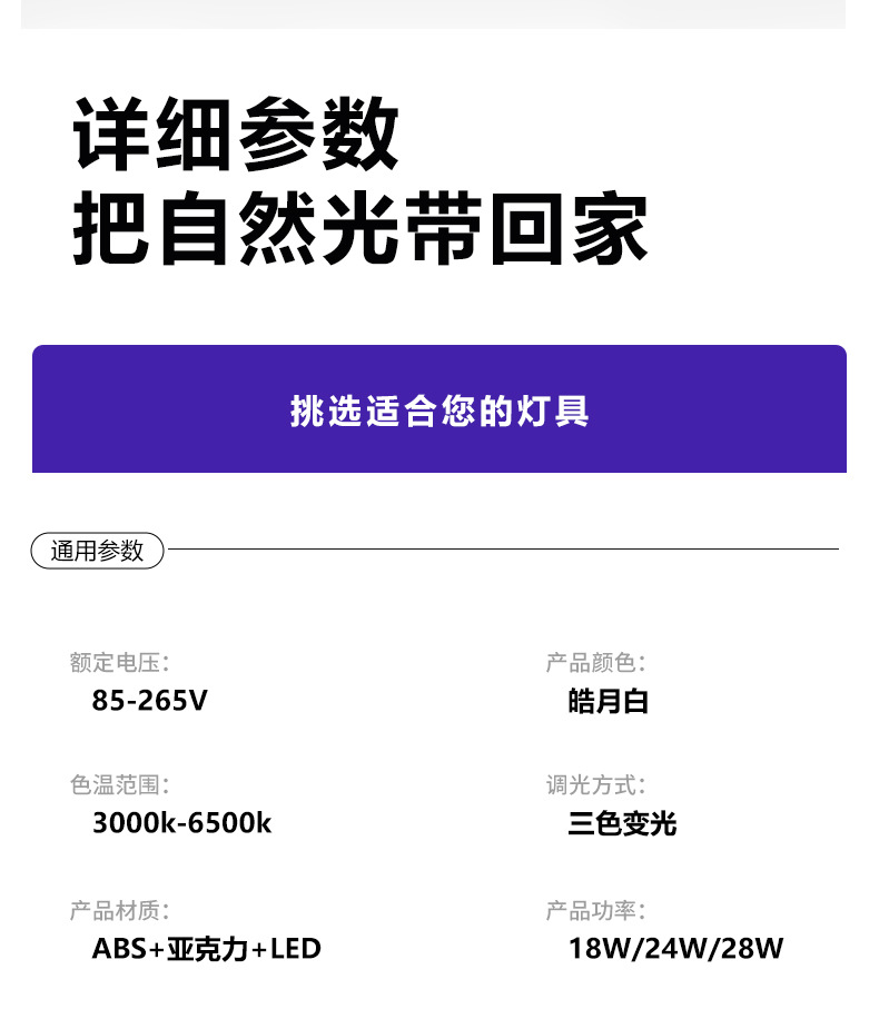 | Potencia | Aurora de cristal dividida - 18W - luz blanca, aurora de cristal dividida - 24w - luz blanca, aurora de cristal dividida - 28w - luz blanca, aurora de cristal dividida - 18W - luz tricolor, aurora de cristal dividida - 24w - luz tricolor, aurora de cristal dividida - 28w - luz tricolor |