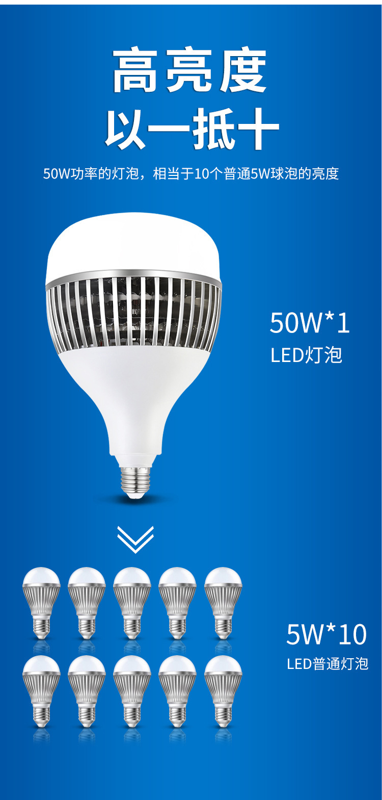 Bombilla LED, bombilla de luz LED, fuente de iluminación con montaje de rosca E40E27, iluminación industrial de alta potencia y alto CRI