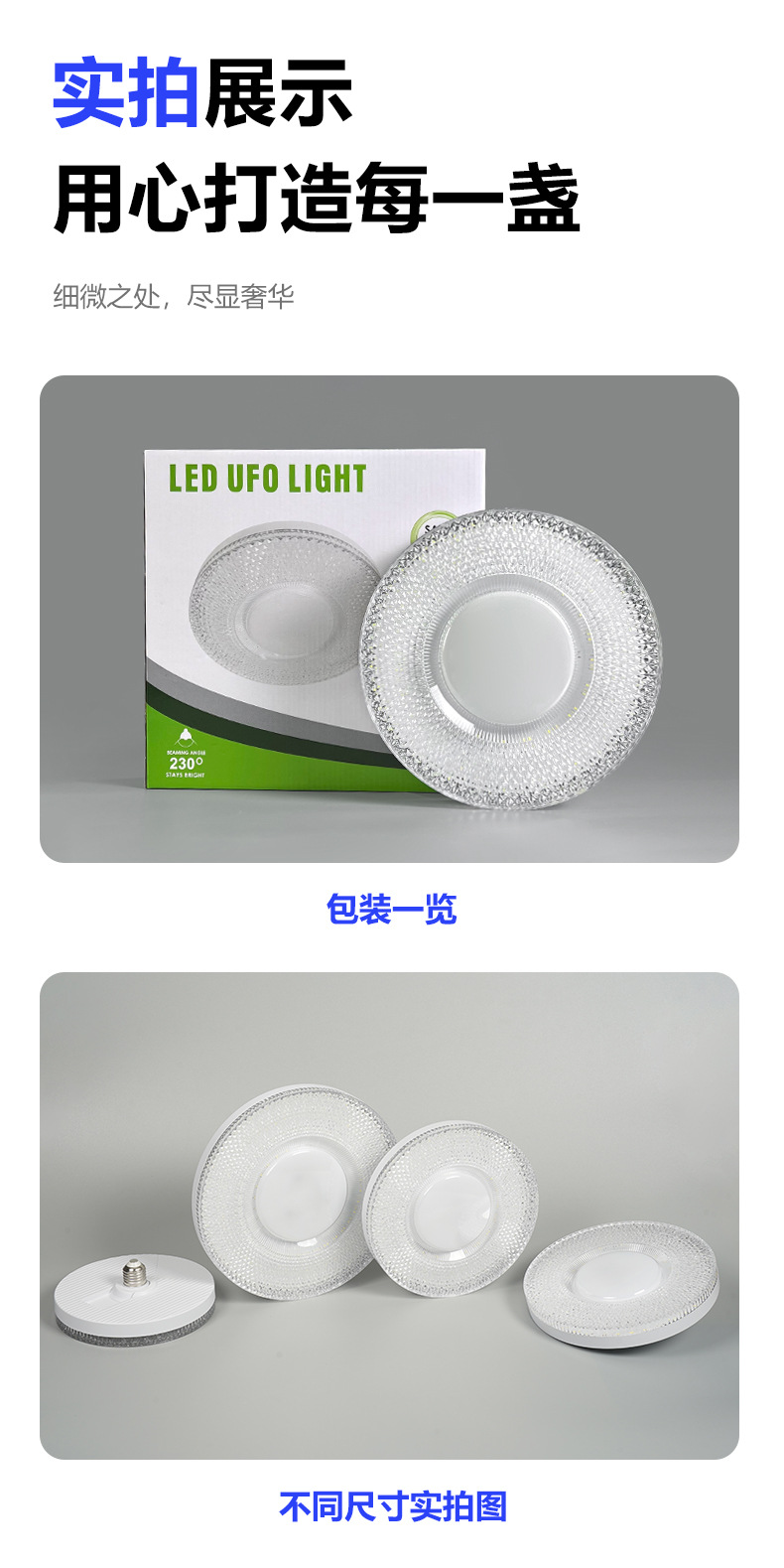 | Potencia | Lámpara de platillo volador dividida de cristal LED - 30w, lámpara de platillo volador dividida de cristal LED - 40w, lámpara de platillo volador dividida de cristal LED - 50w, lámpara de platillo volador dividida de cristal LED - 80w |
