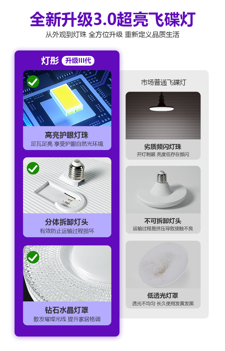 | Potencia | Lámpara de platillo volador dividida de cristal LED - 30w, lámpara de platillo volador dividida de cristal LED - 40w, lámpara de platillo volador dividida de cristal LED - 50w, lámpara de platillo volador dividida de cristal LED - 80w |