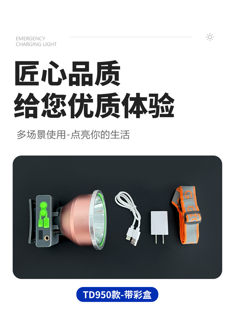 Faro, lámpara de minero, luz fuerte, carga, súper brillante, linterna dividida montada en la cabeza, batería de larga duración al aire libre, lámpara de xenón de pesca nocturna