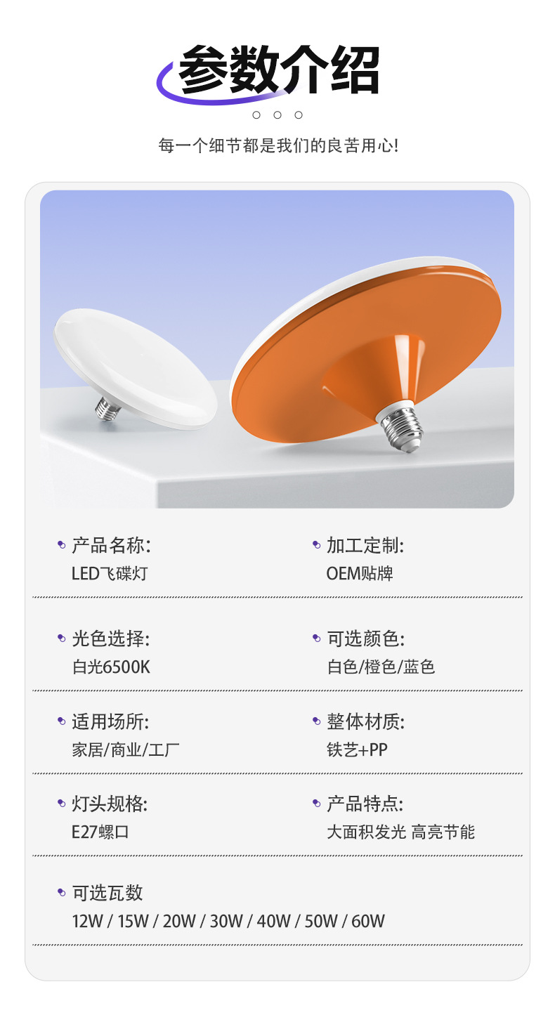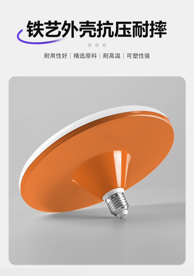 | Potencia | 12w - lámpara de platillo volador naranja, 15w - lámpara de platillo volador naranja, 20w - lámpara de platillo volador naranja, 30w - lámpara de platillo volador naranja, 40w - lámpara de platillo volador naranja, 50w - lámpara de platillo volador naranja, 60W - lámpara de platillo volador naranja |