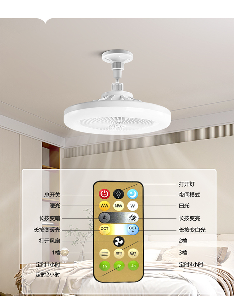 Ventilador de techo LED transfronterizo con luz blanca, casquillo E27, para sala de estar, ventilador de techo de tres colores con control remoto, integrado con ventilador y difusor de aroma.