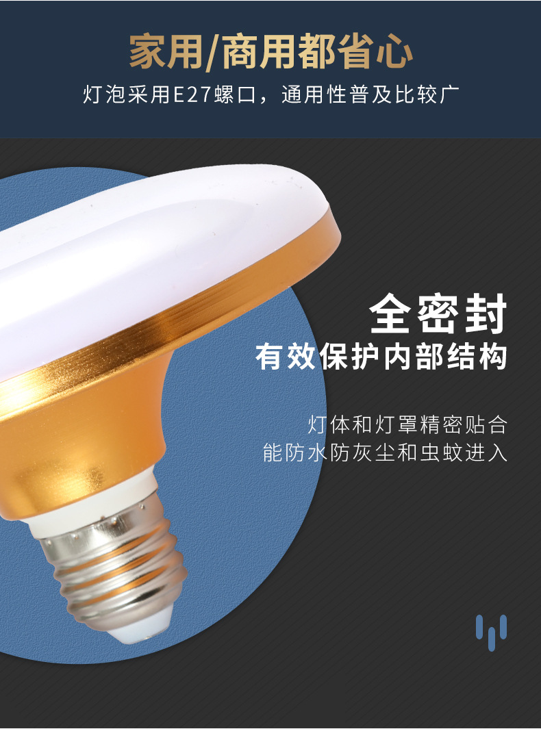 Fabricante al aire libre tres bombillas de lámpara de tornillo super brillante enchufe platillo volador a prueba de agua bombillas de ahorro de energía de aleación de aluminio hogar