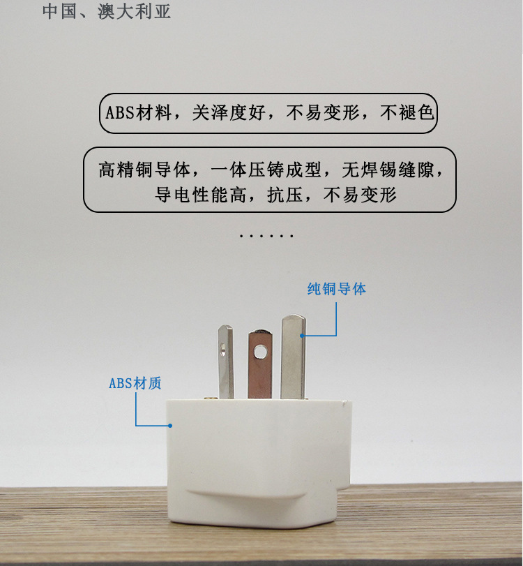 Estándar nacional Enchufe de conversión estándar australiano Enchufe de Australia Nueva Zelanda Convertidor de enchufe de conversión estándar australiano Cobre