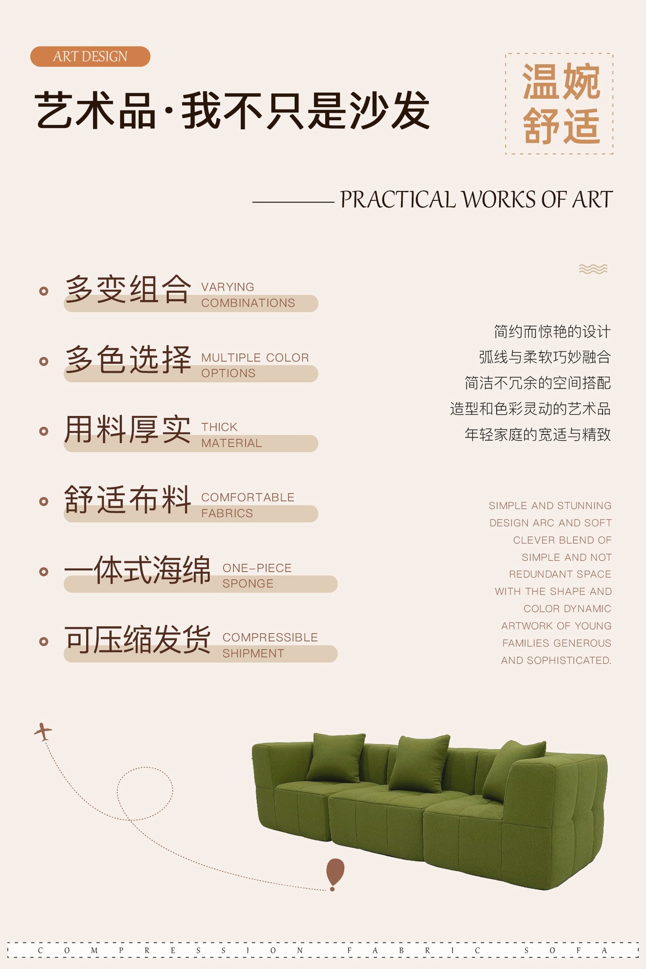 Sofá de algodón de azúcar estilo crema combinación libre apartamento pequeño red red compresión tela de vacío sofá de sala de estar transfronterizo