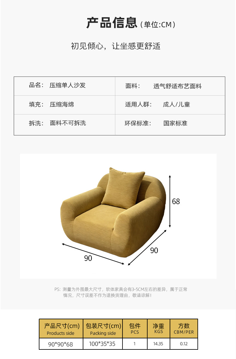 seda de compresión un solo sofá silla esponja en forma de hotel de apartamentos en línea famoso ocio vacío sofá de compresión