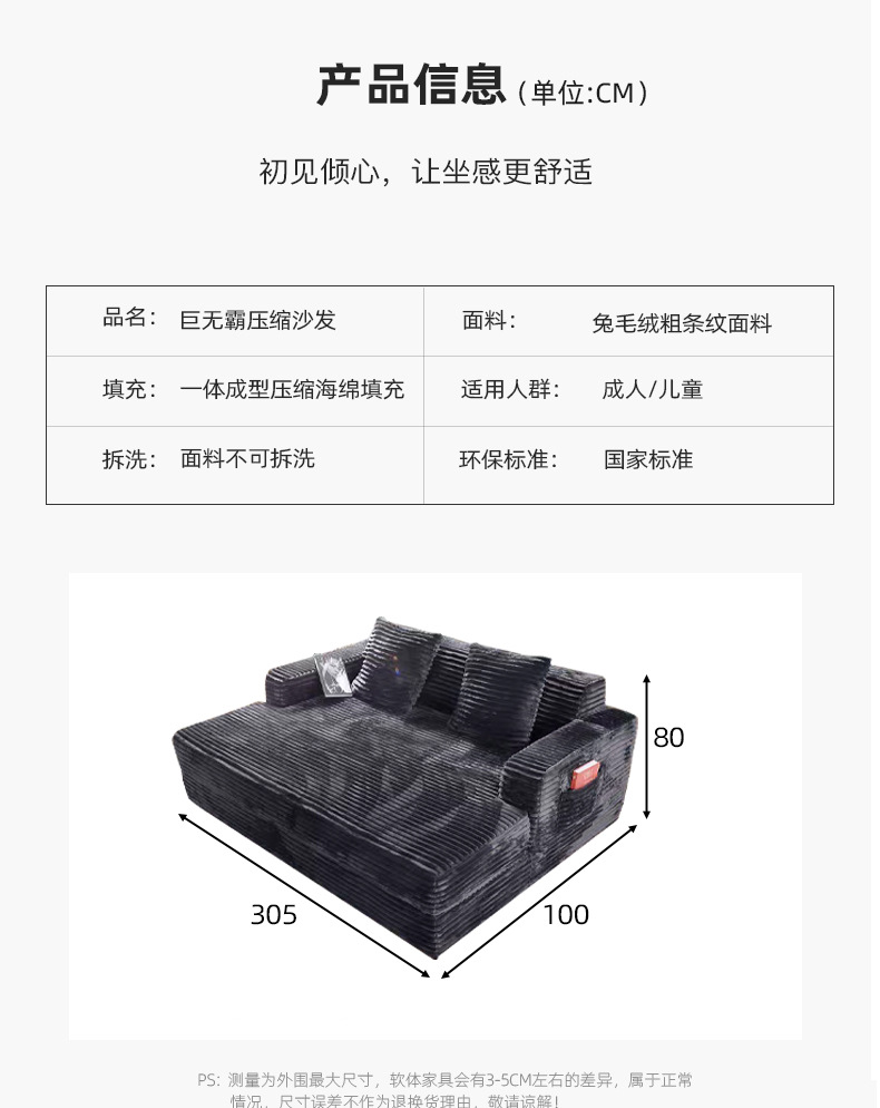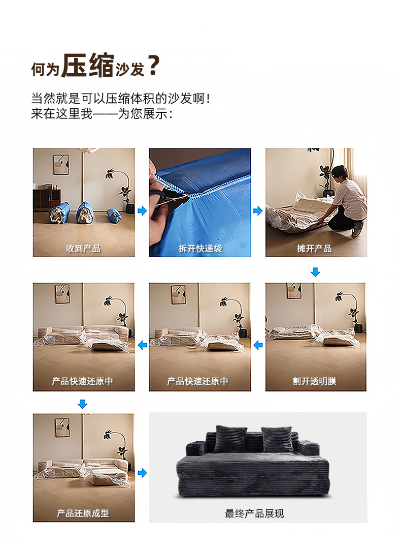 Sofá de compresión integral, sofá de vacío de esponja completa, sofá de compresión plegable grande, sofá de compresión 2 - en - 1