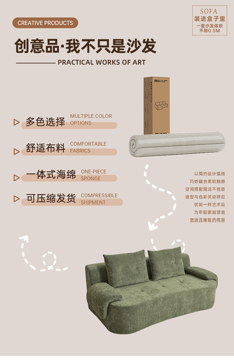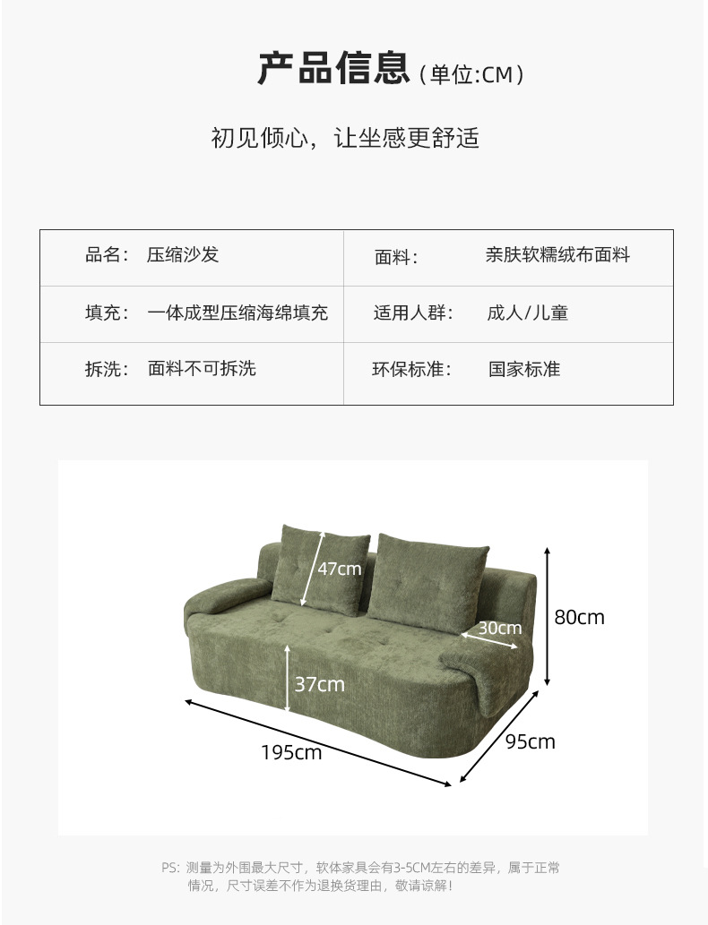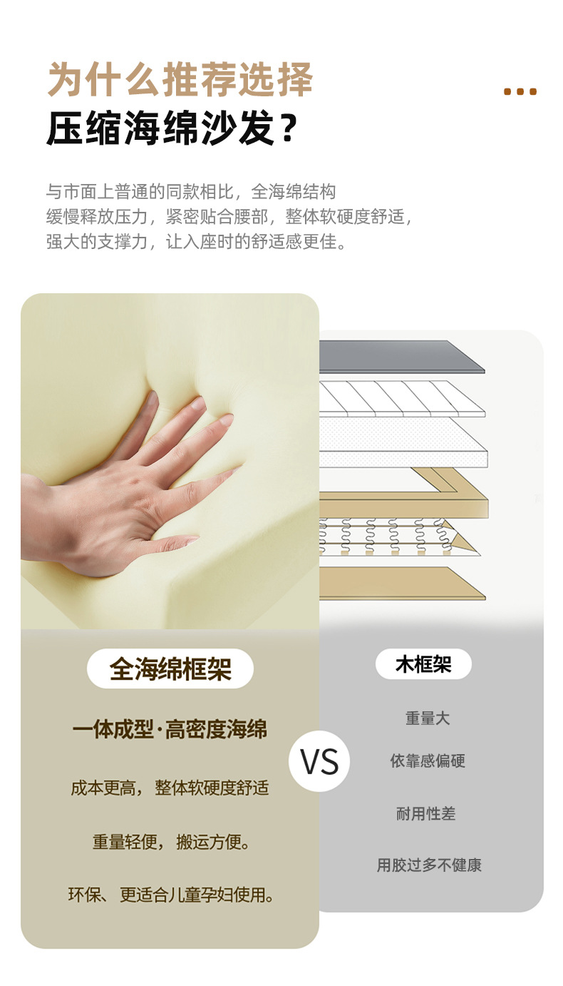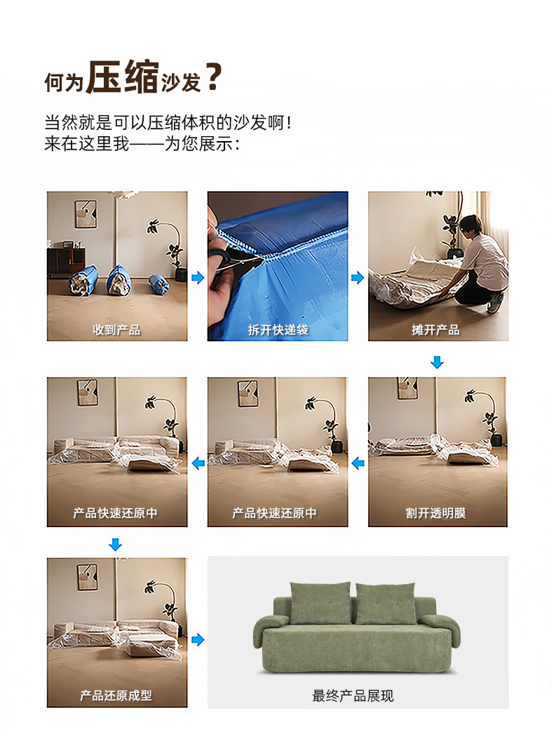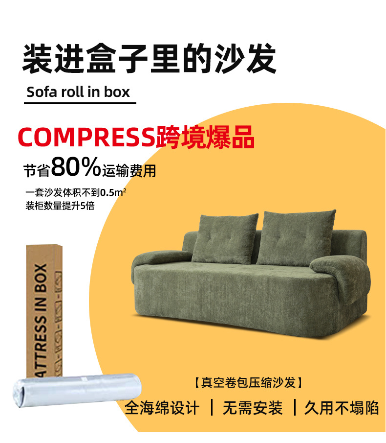 Foshan fábrica de muebles de compresión sofá sin esqueleto sofá esponja de alta densidad sofá de compresión exportación transfronteriza