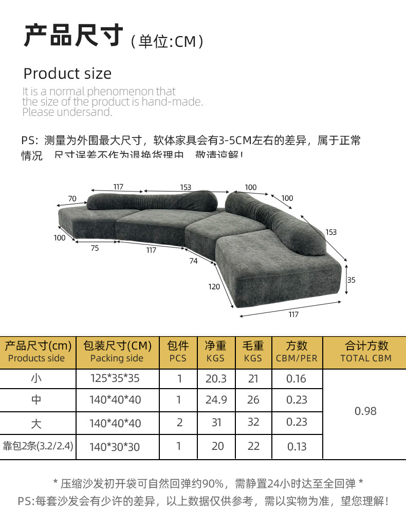 Vacuo integrado comprimido sofá de gran villa hotel todo el sofá de roca esponja combinación de módulo irregular
