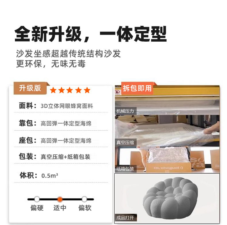 Sofá de Fútbol Rochburg de Exportación, con Forma de Sofá, de Algodón con Estructura de Panal, Esponja sin Marco, Compresión al Vacío para el Ocio