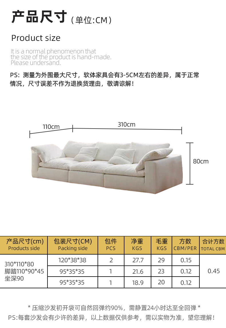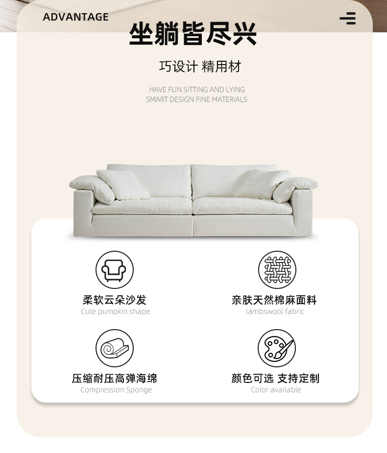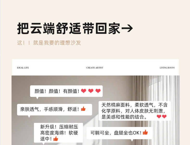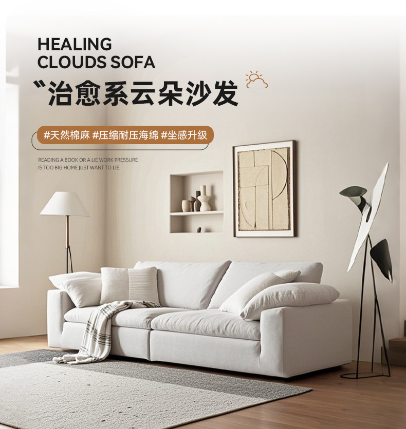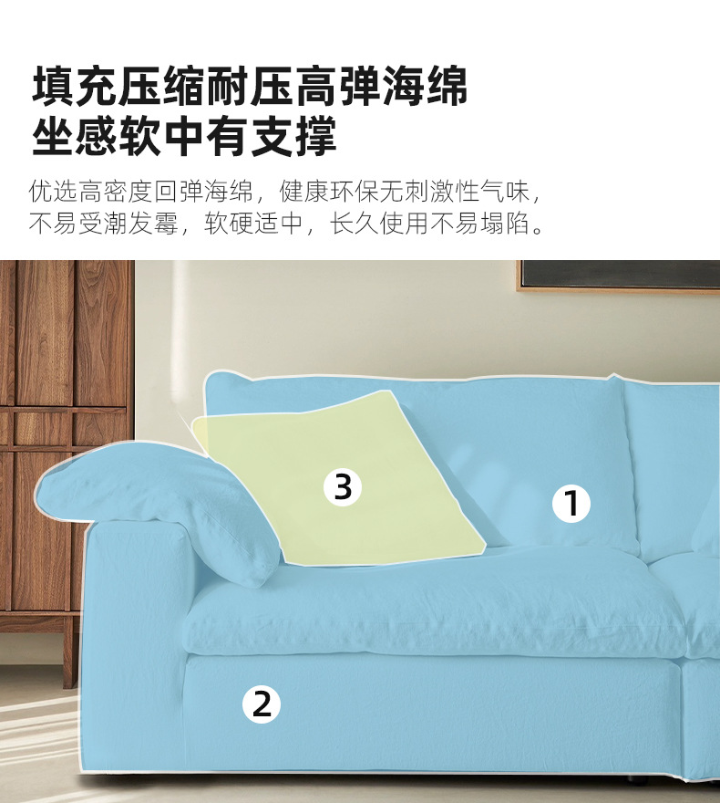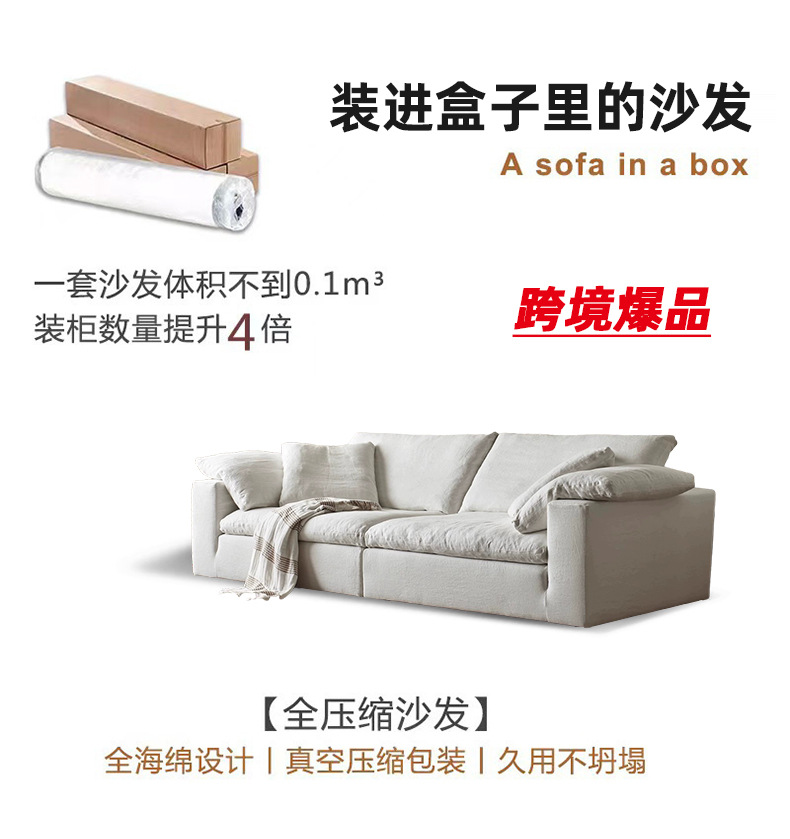 Tejido de lino compresión al vacío Cloud sofá modular rojo neto esponja de polímero sofá deshuesado sofa