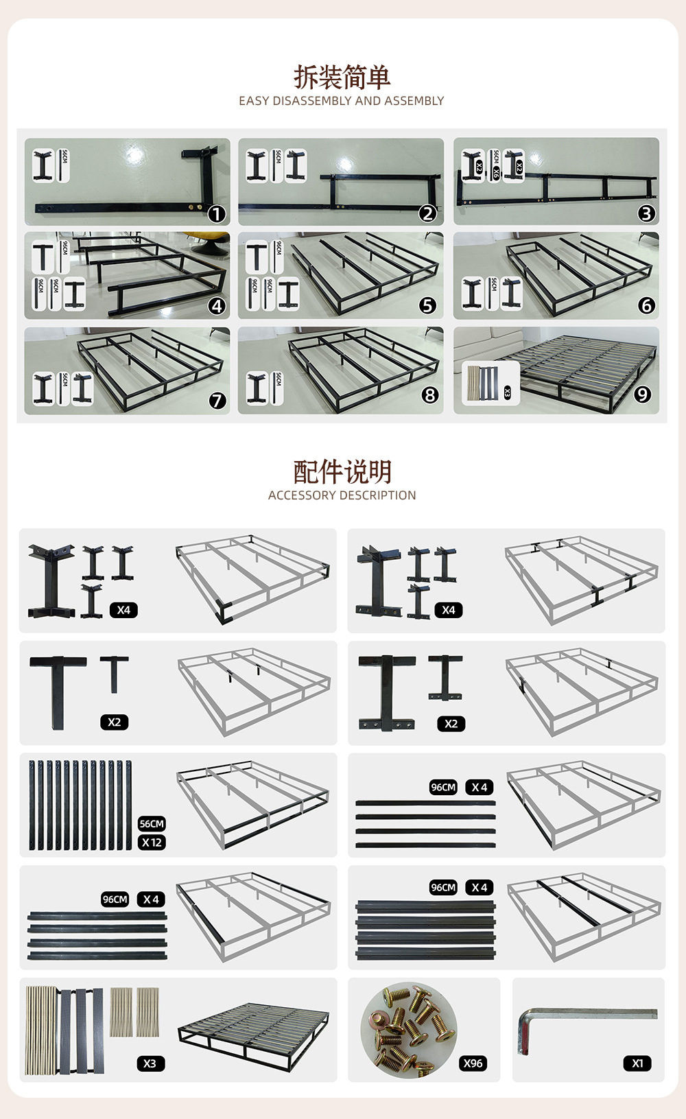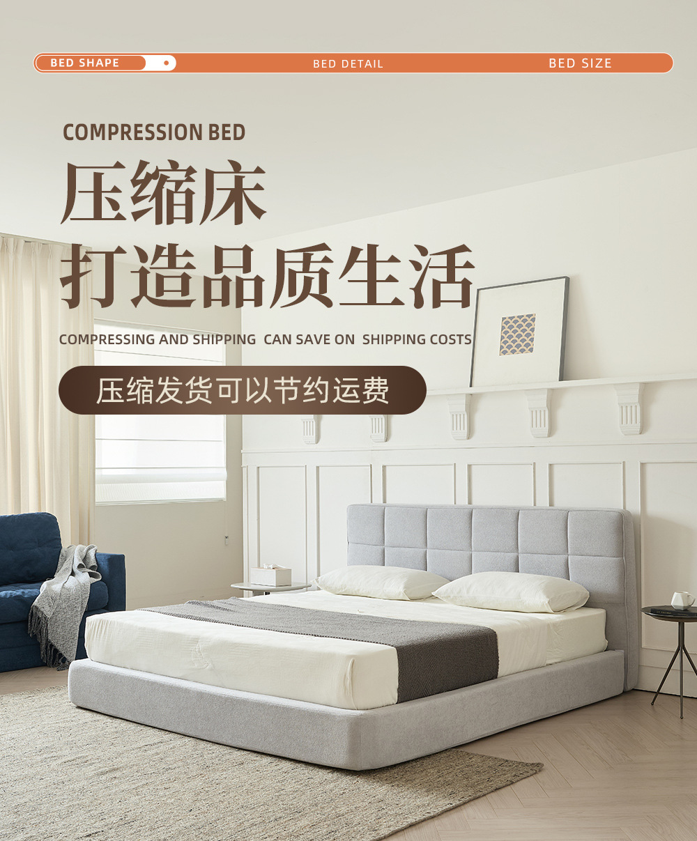 Cama plegable de tela minimalista italiana pequeña casa de comercio exterior cama compresible paquete blando de un solo apartamento cama de ensamblaje metal