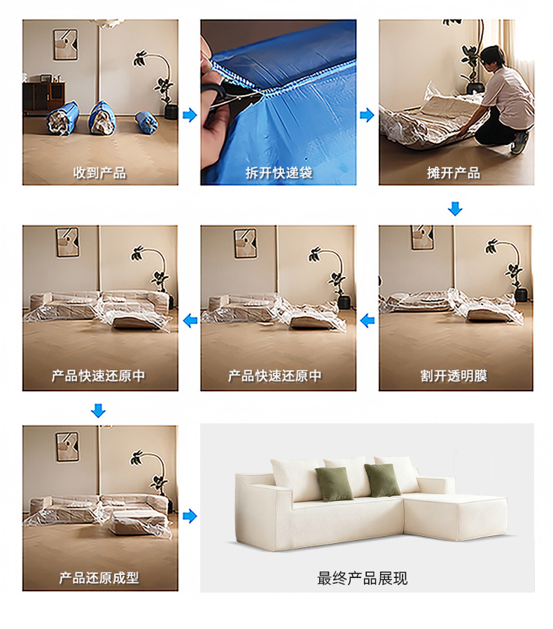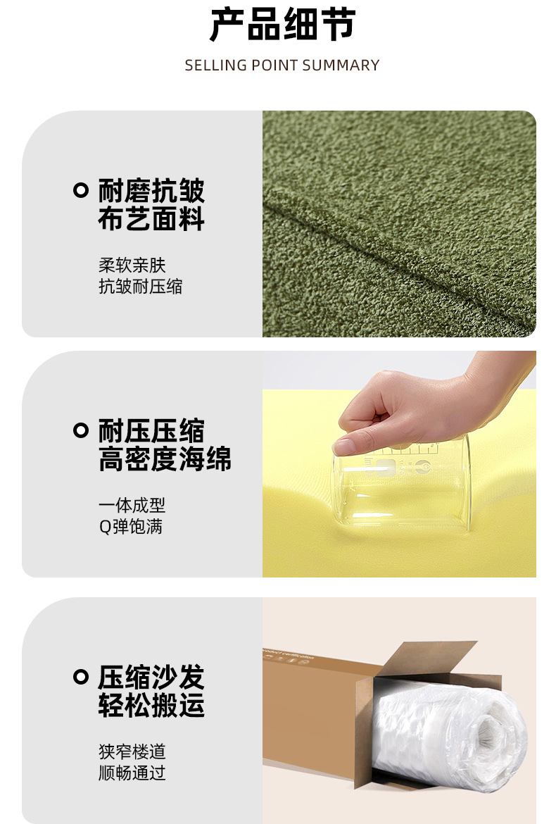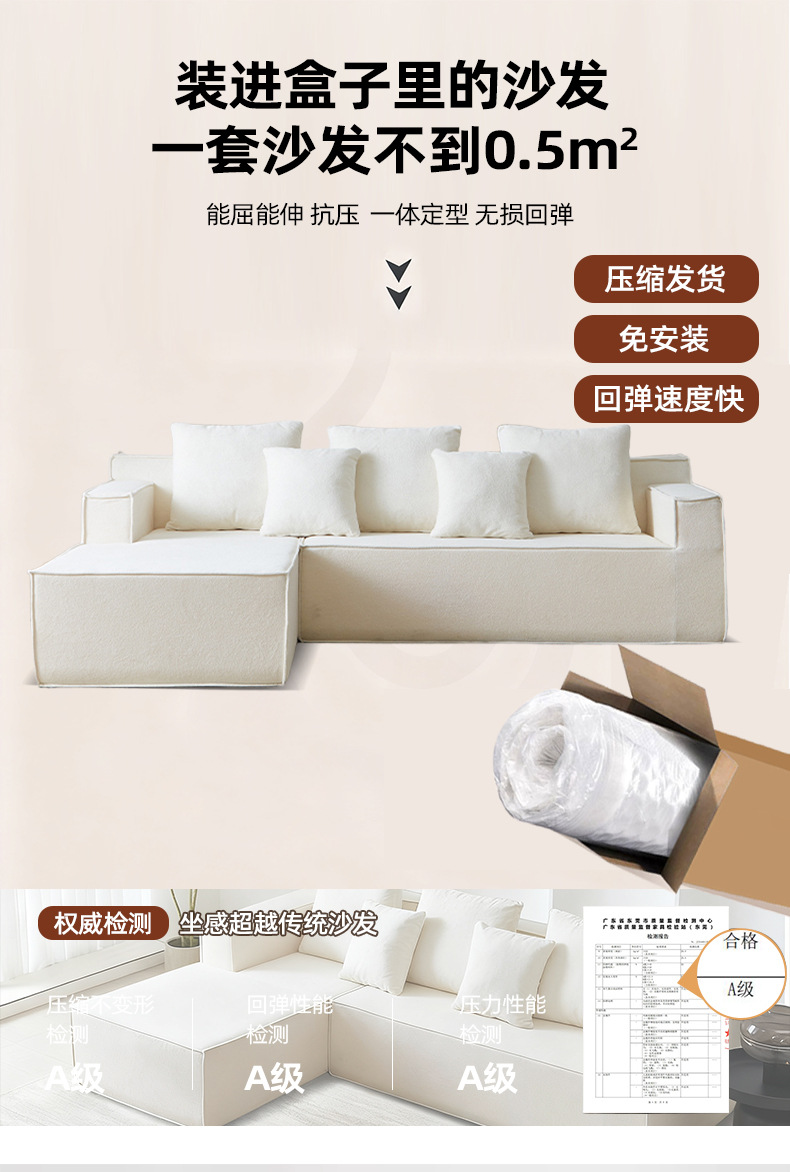 Fábrica de sofá de compresión fuente de red esponja integral sin hueso de tofu bloque de vacío enrollar sofá de tela