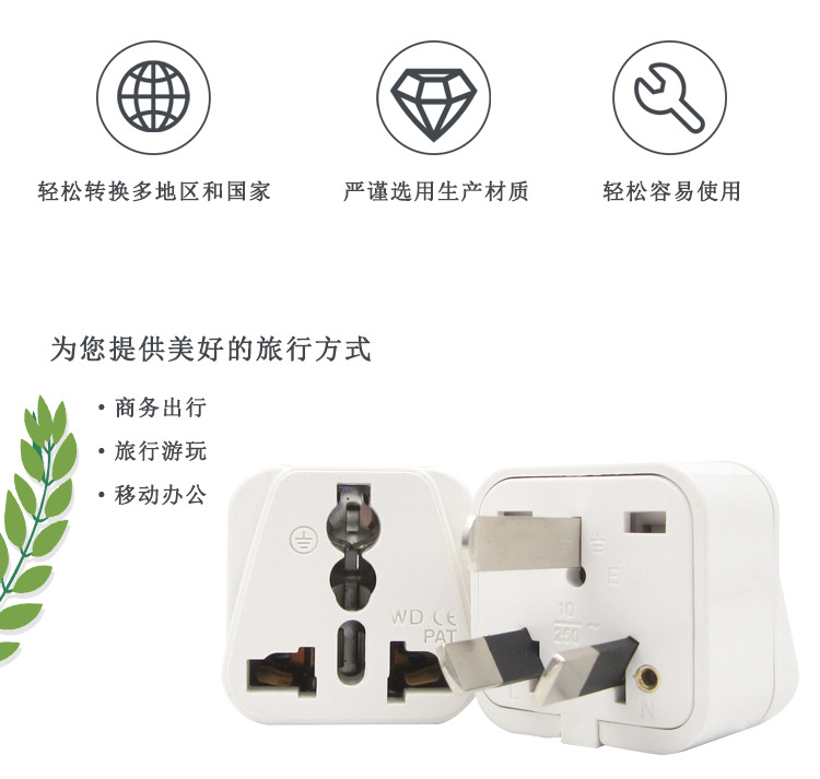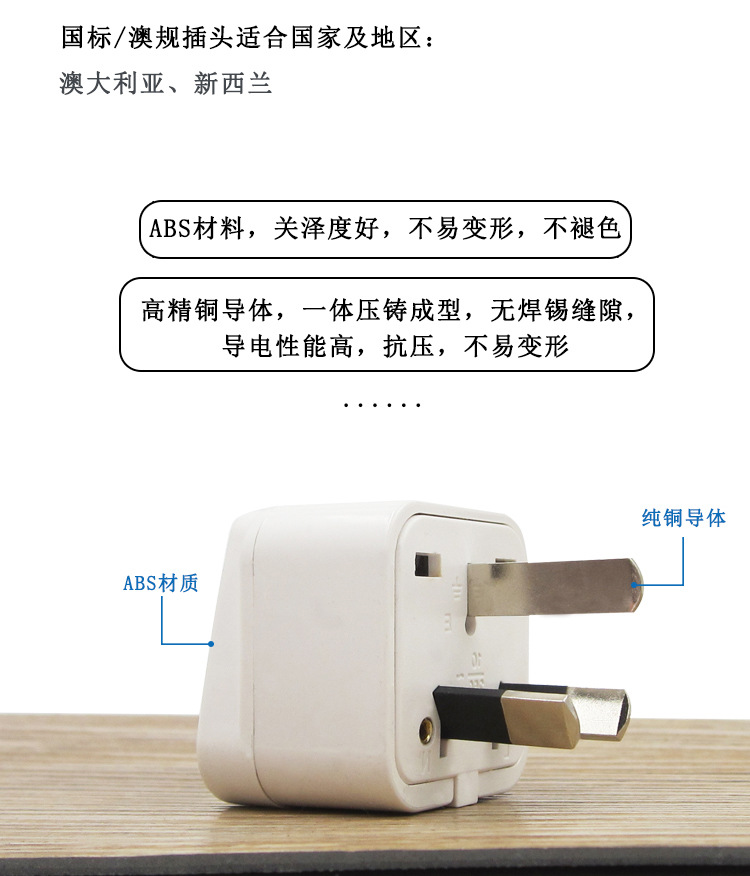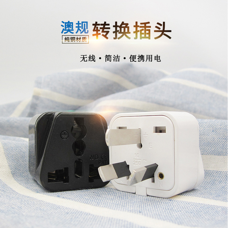 Adaptador de corriente estándar australiano de cobre puro para viajes, enchufe australiano, venta directa de fábrica