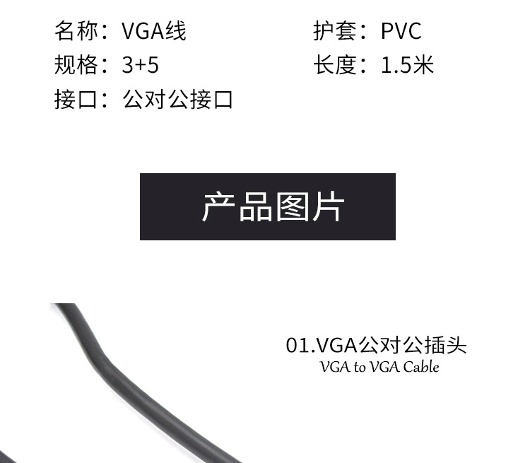 Cable VGA macho a macho HD cable 3 + 5VGA cable adaptador LCD cable 1,5 m