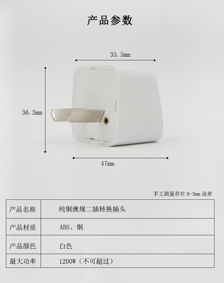 | Modelo de la especificación | Blanco * enchufe de conversión de enchufe estándar australiano dos-cobre puro |