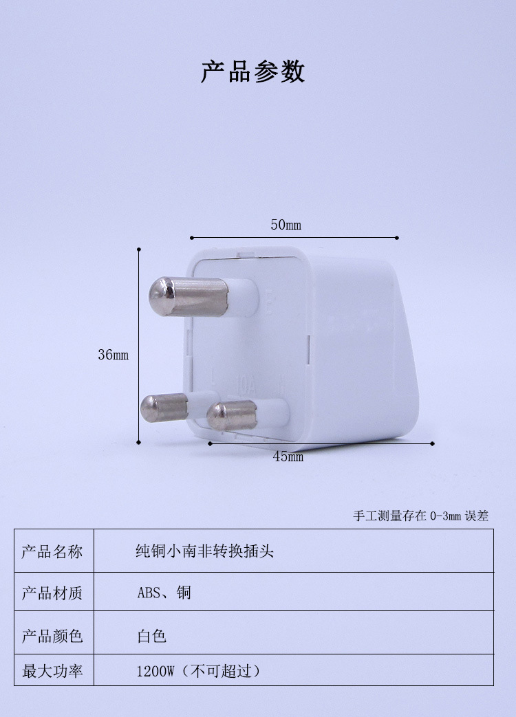 | Modelo de la especificación | Pequeño enchufe de conversión de Sudáfrica |