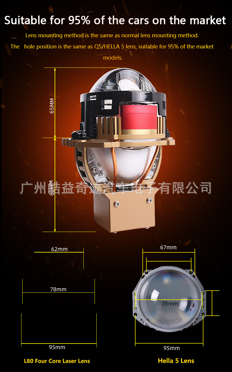 2024 nuevo láser directo para automóviles lente LED de doble luz 75W lente láser del faro del automóvil