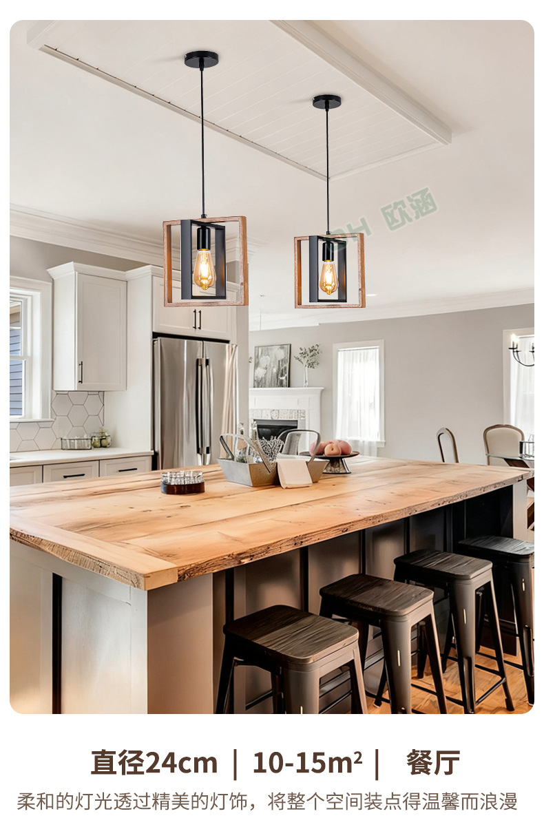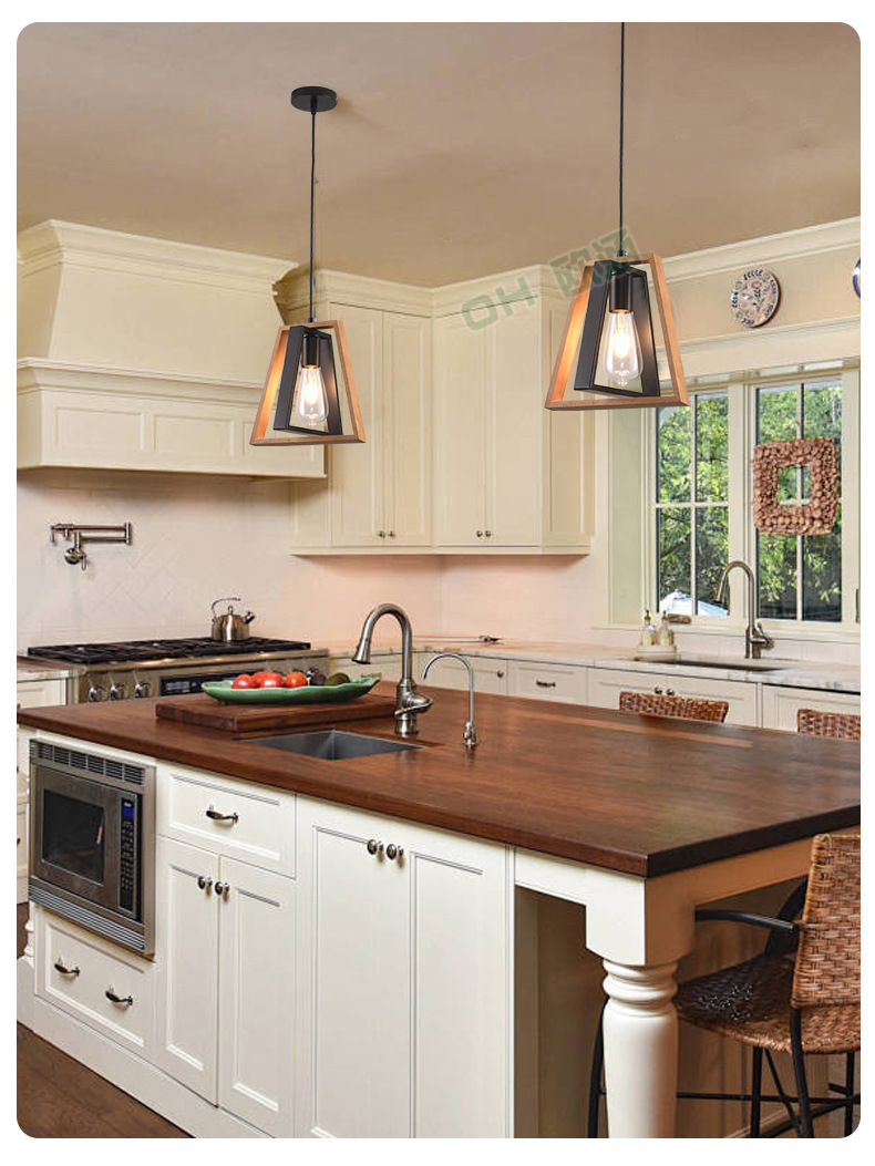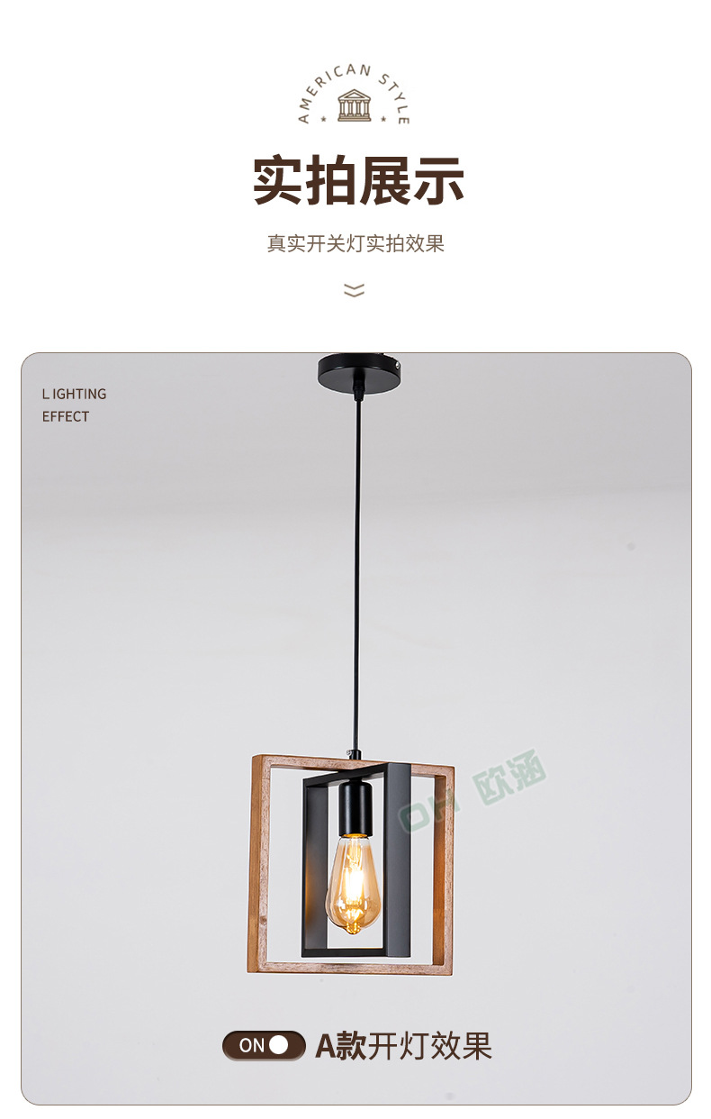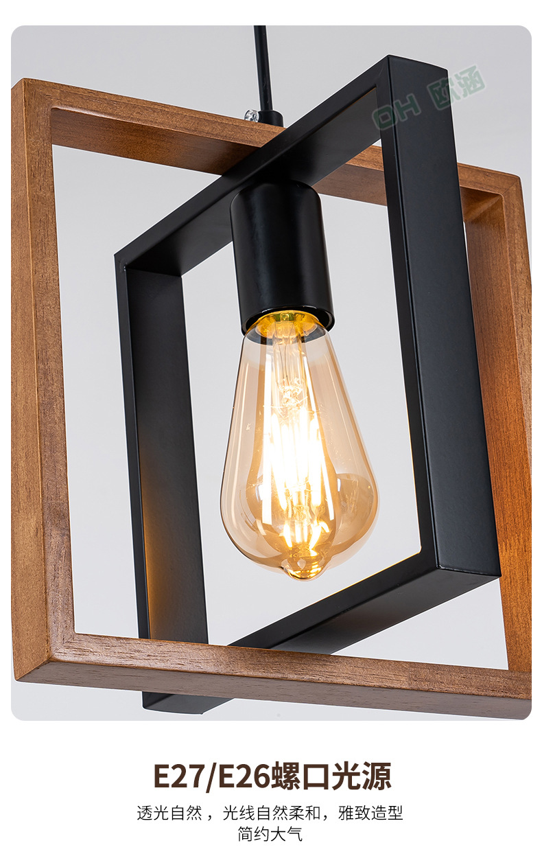 Lámpara de Techo de Madera Maciza para Restaurante, Estilo Americano Simple, Iluminación Industrial Retro de Hierro, Lámpara Decorativa para Cafetería
