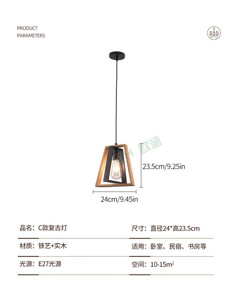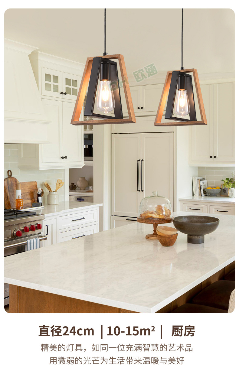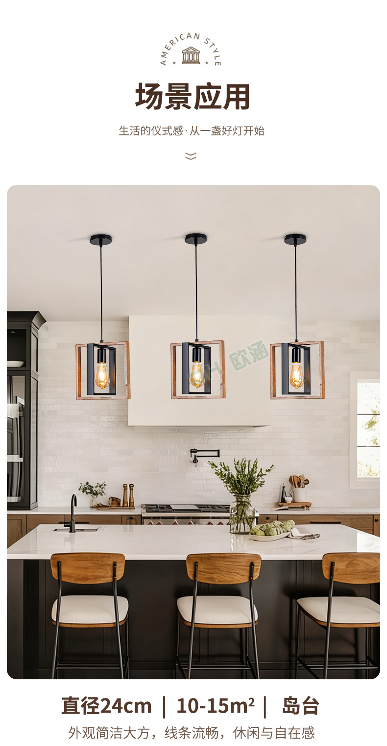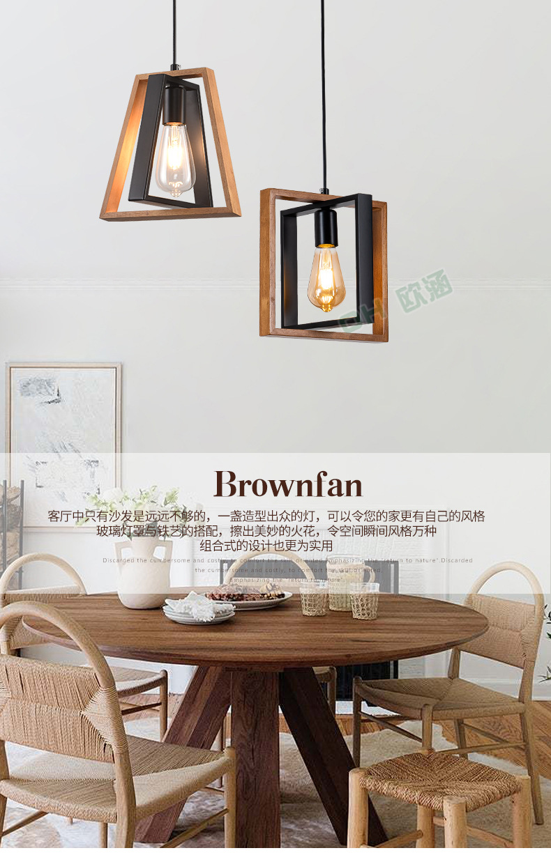 Lámpara de Techo de Madera Maciza para Restaurante, Estilo Americano Simple, Iluminación Industrial Retro de Hierro, Lámpara Decorativa para Cafetería