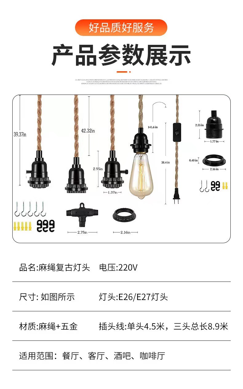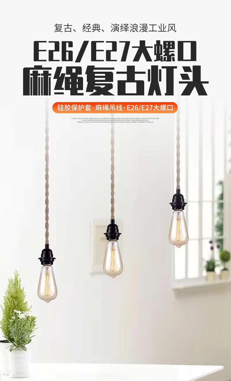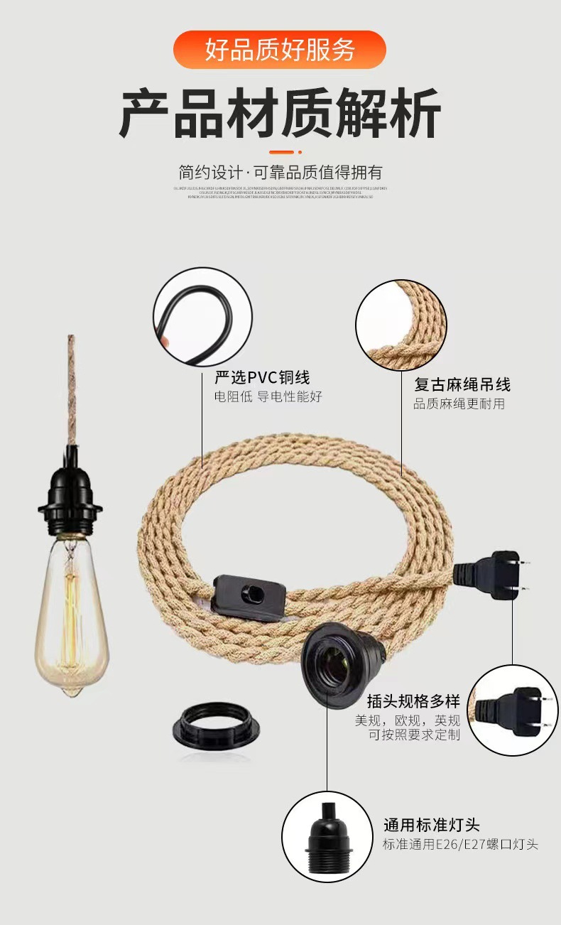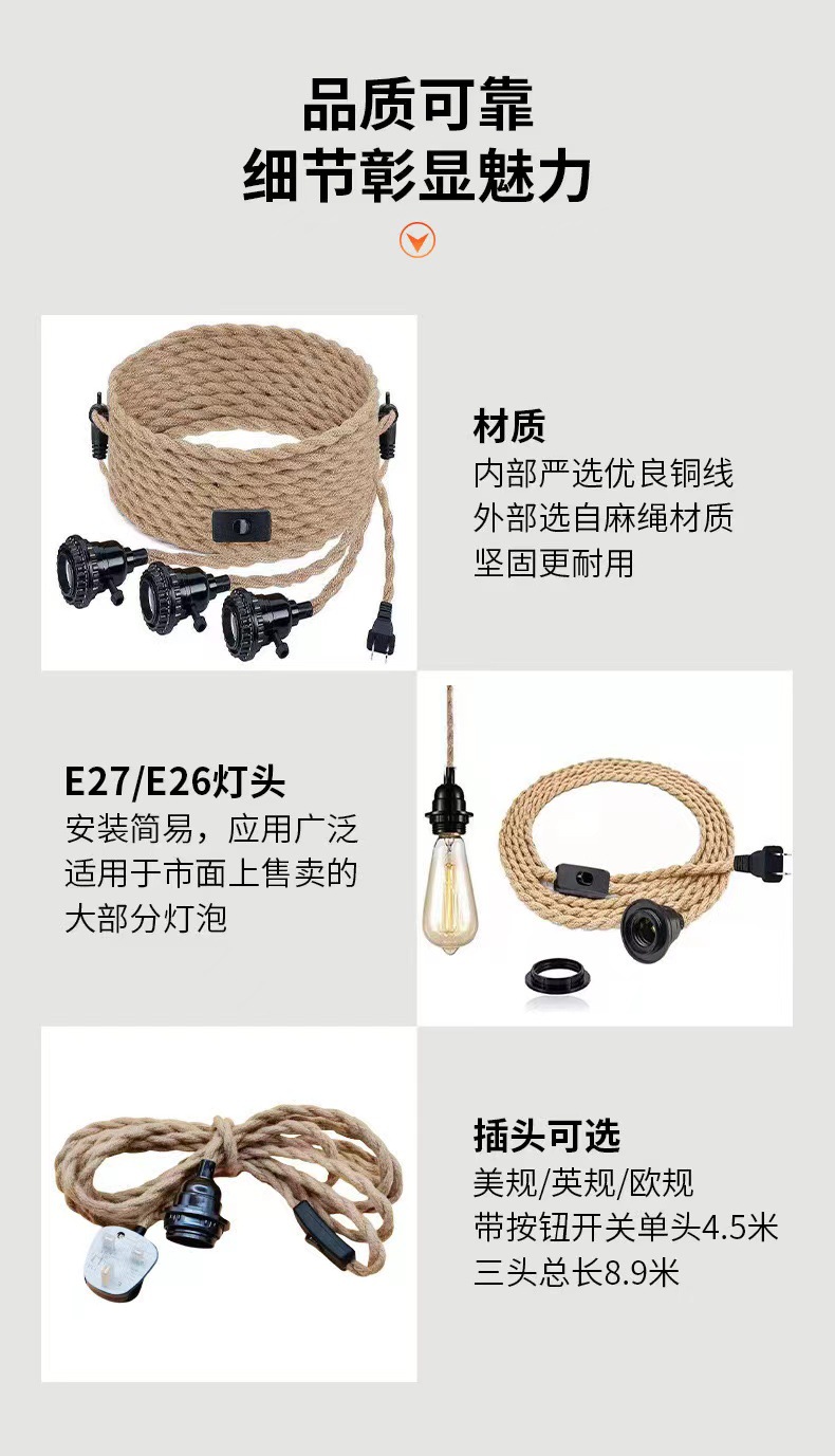 Transfronterizo Amazon retro cable de cable de hemp cable de conmutación en serie E27 E26 enchufe de interruptor de lámpara