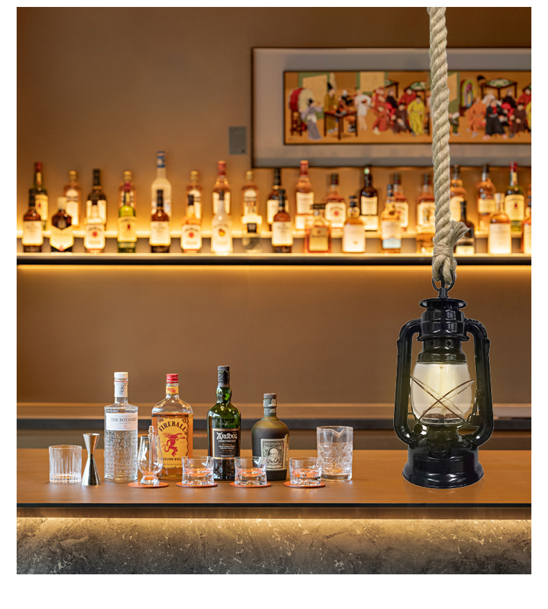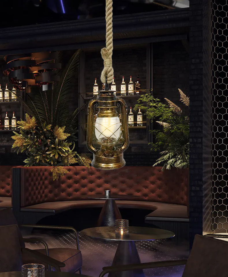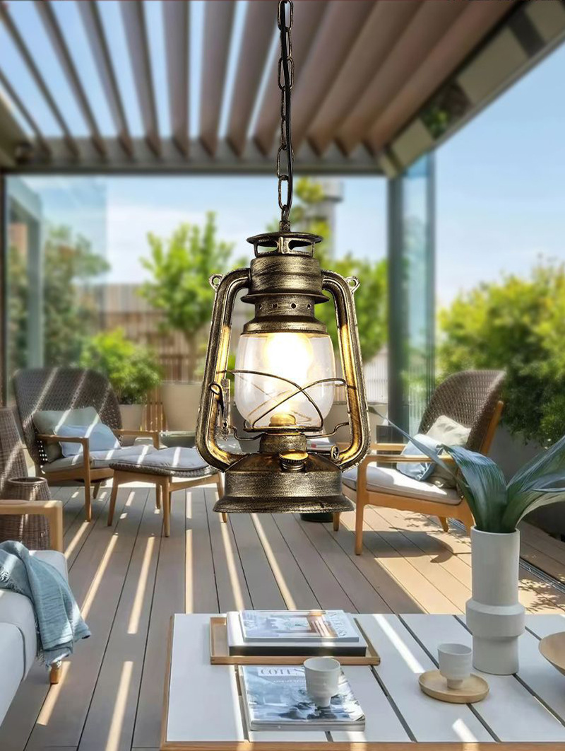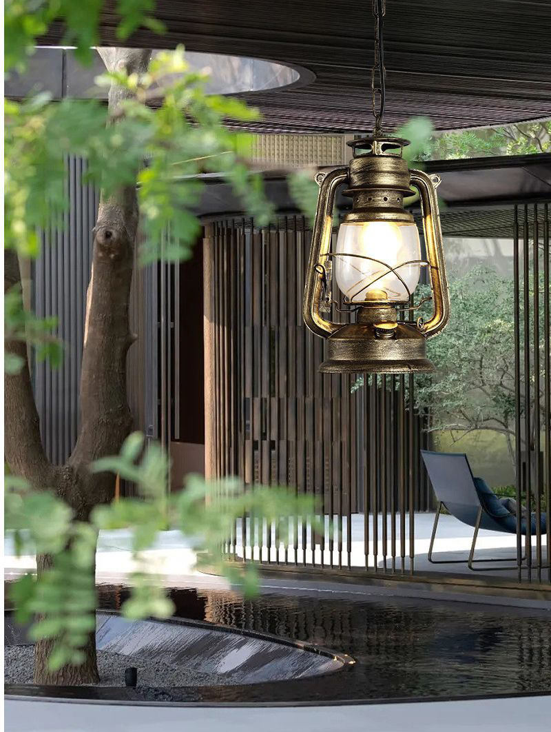 Restaurante retro retro americano café bar farola de hierro forjado campamento al aire libre lámpara