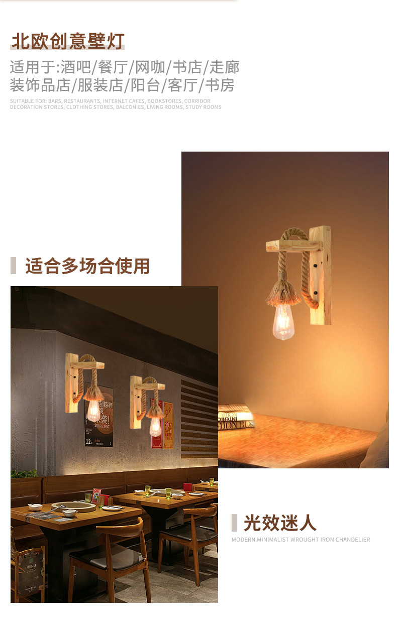 American country retro cafetería pasillo restaurante bar creativo madera madera lámpara de pared