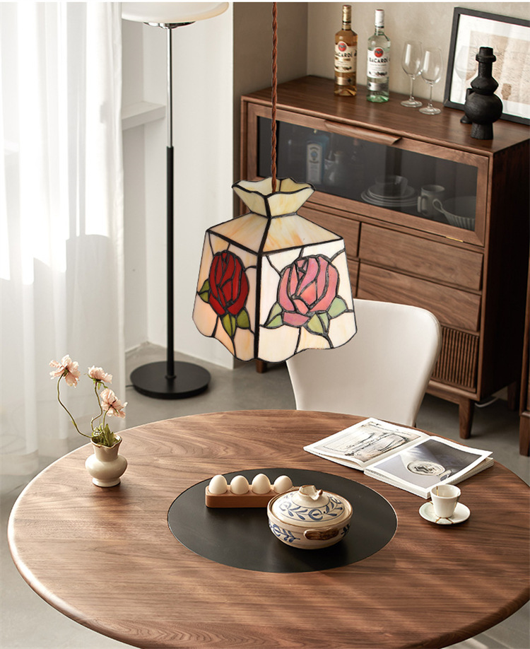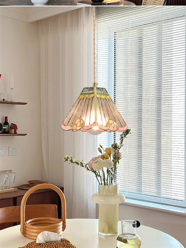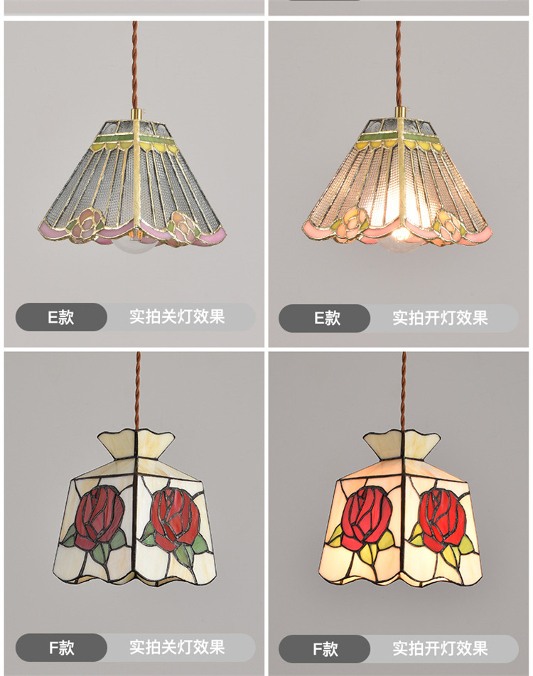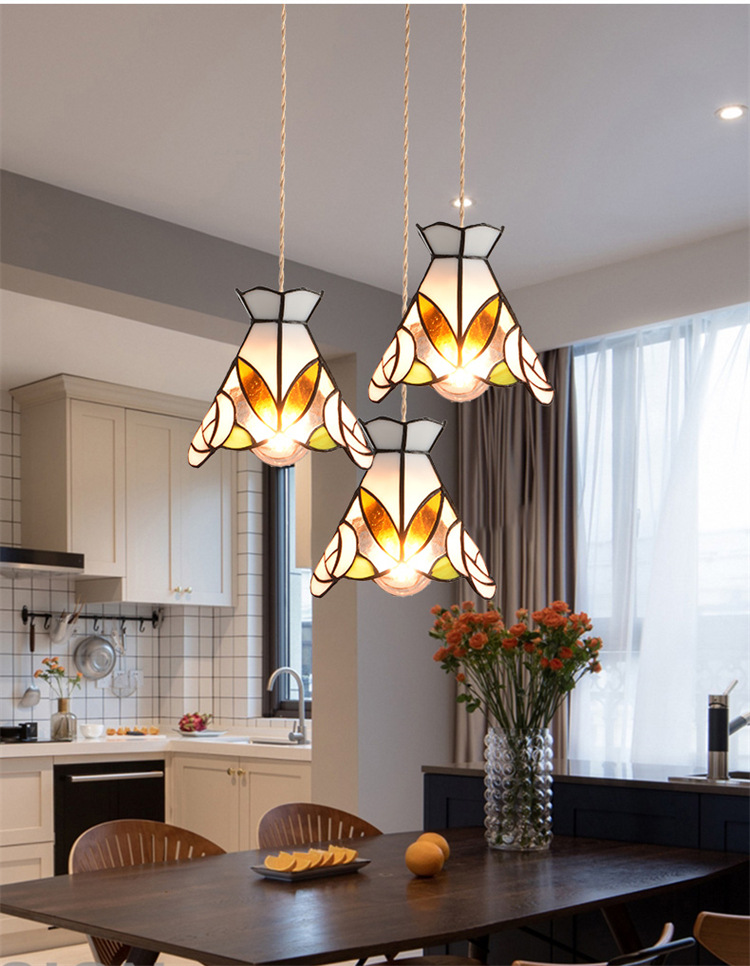 Lámpara de soldadura hecha a mano de latón retro estilo americano cabecera pasillo restaurante café vidrio de colores pequeño candelier
