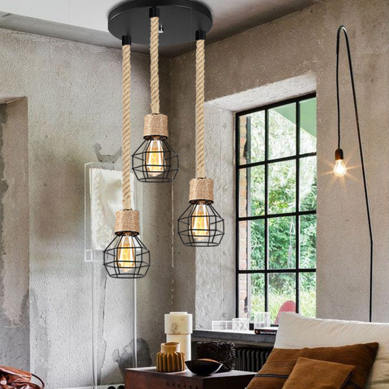 Estilo industrial retro americano, hierro forjado, cuerda de cáñamo, candelabro, restaurante, tienda de ropa, bar, ventana, nórdico, minimalista moderno