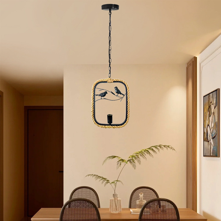 Nuevo candelabro de pájaro de hierro forjado de cuerda de cáñamo chino sala de estar comedor salón de té tatami zen candelabro de pájaro de cuerda de cáñamo