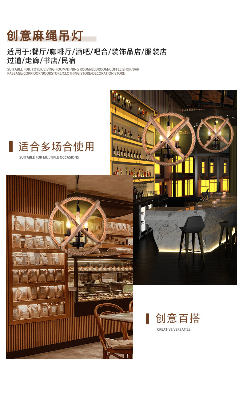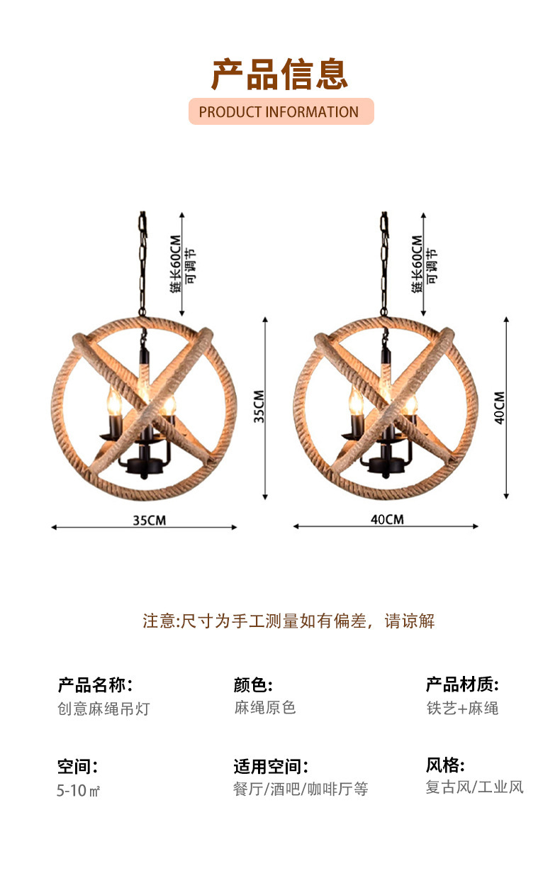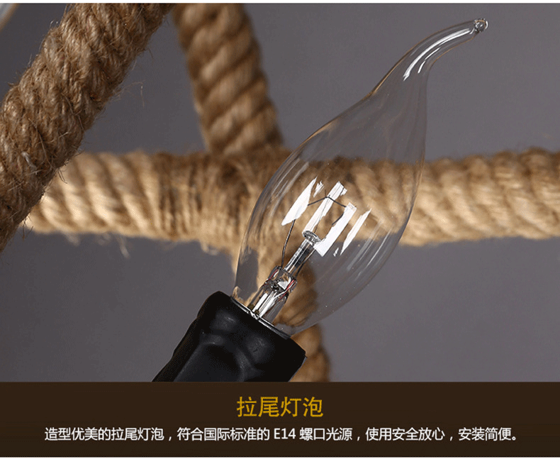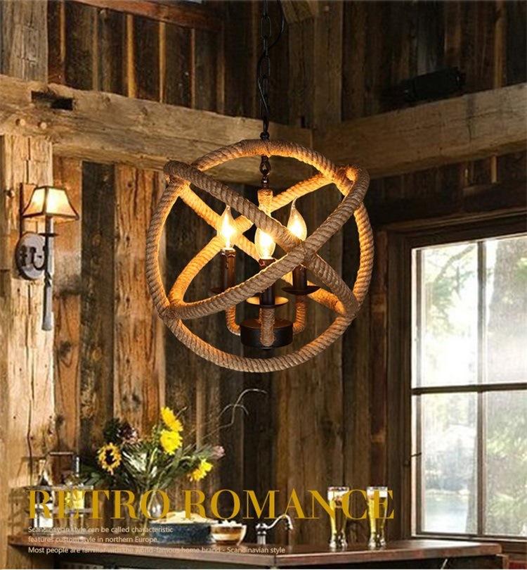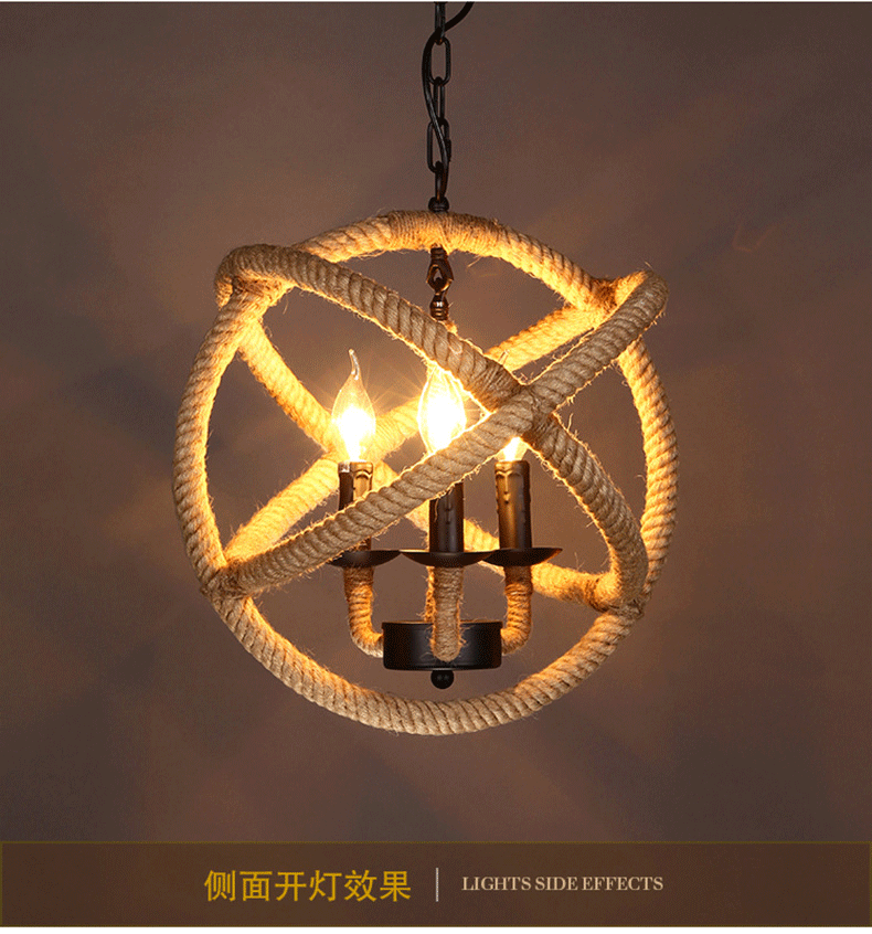 Lámpara de cuerda de cáñamo retro americana tienda de ropa creativa restaurante de alojamiento residencial cafetería de estilo industrial individual lámpara de caja de hotel