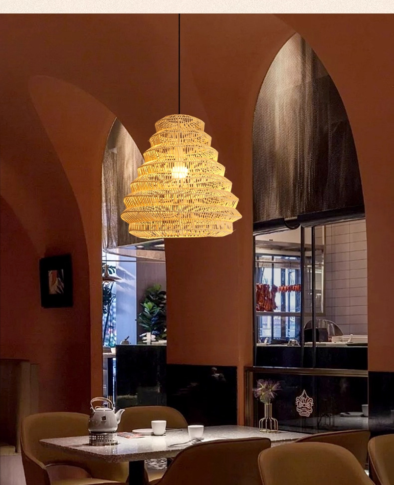 Viento de caña silencioso sala de estar dormitorio comedor residencial lámpara de caña artesanal tejida a mano personalidad creativa bar de mesa de comedor candelabro